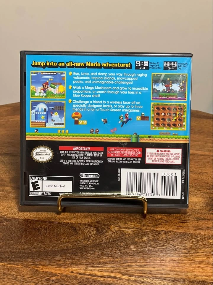 This is a physical copy of the video game New Super Mario Bros. for the Nintendo DS console.