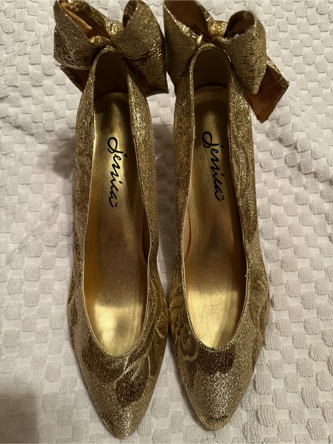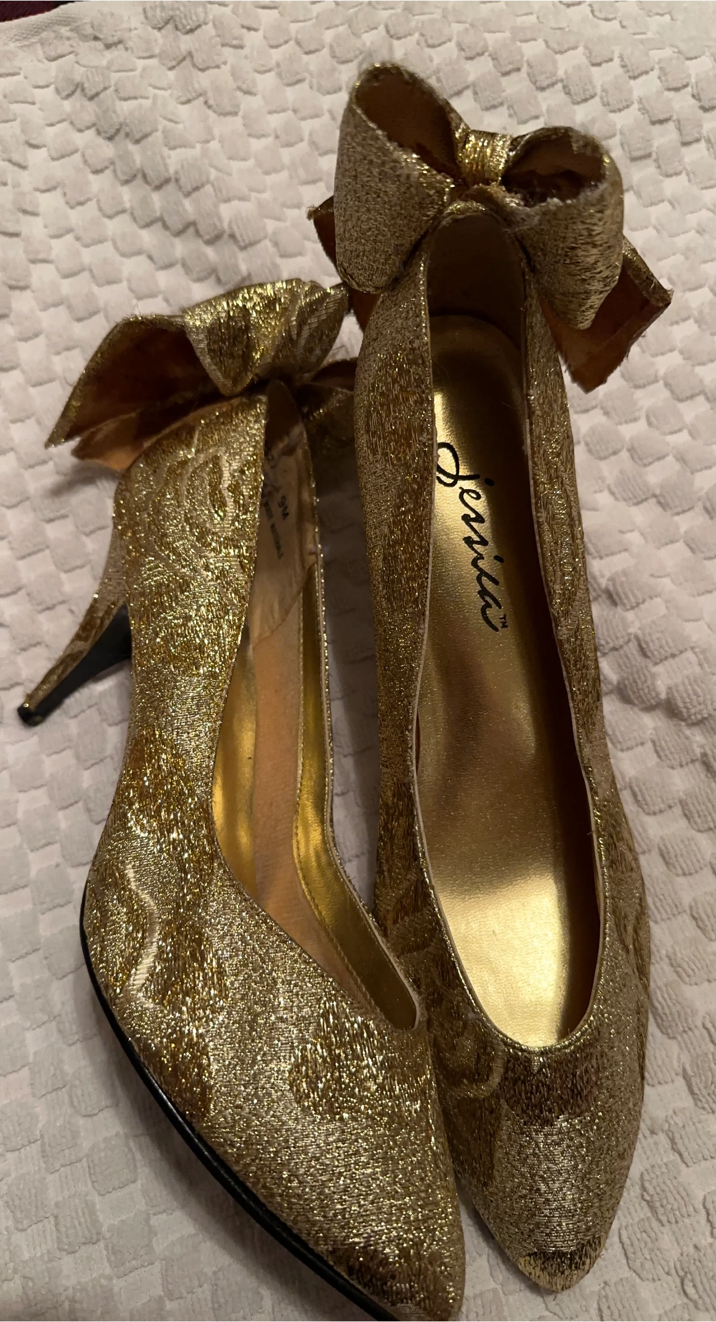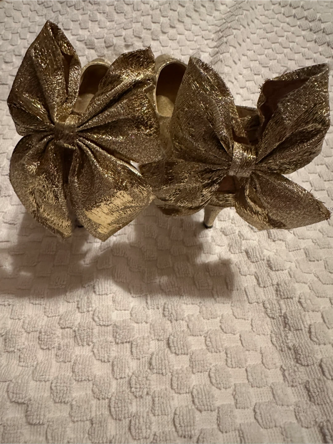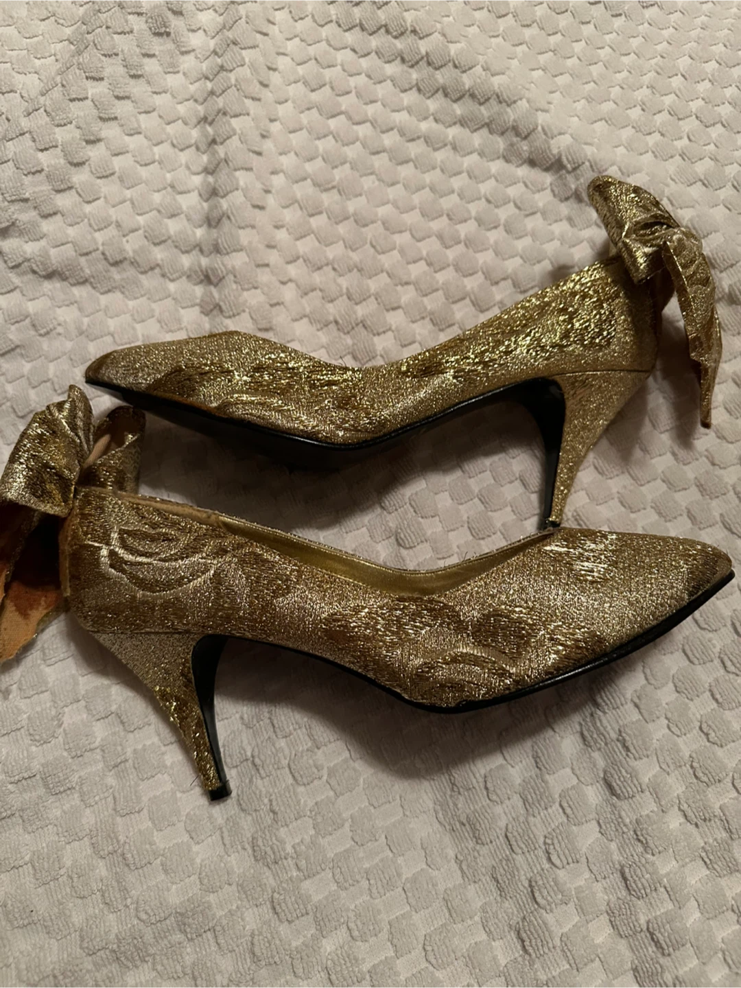 Golden Heels with Rose Pattern and Bows
