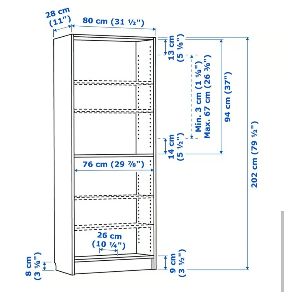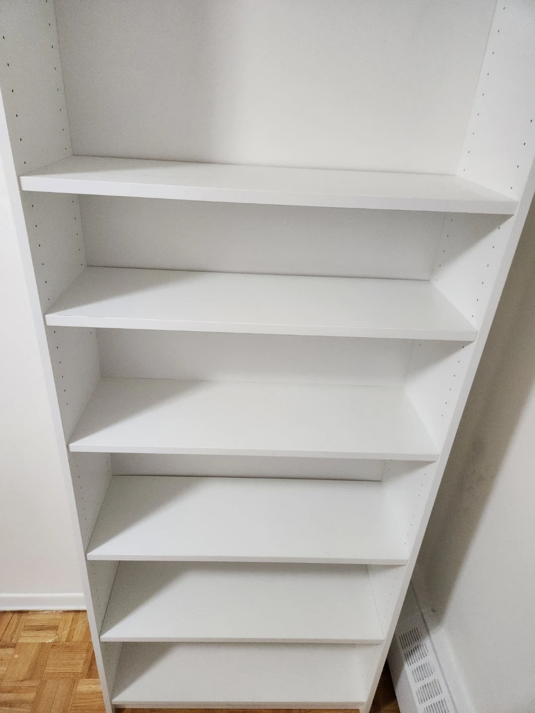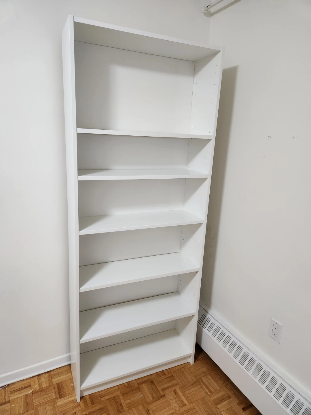 Selling a white IKEA Billy bookcase! It’s in great shape and ready to hold all your books and treasures. The dimensions are approximately 31 1/2" wide, 11" deep, and 79 1/2" tall.