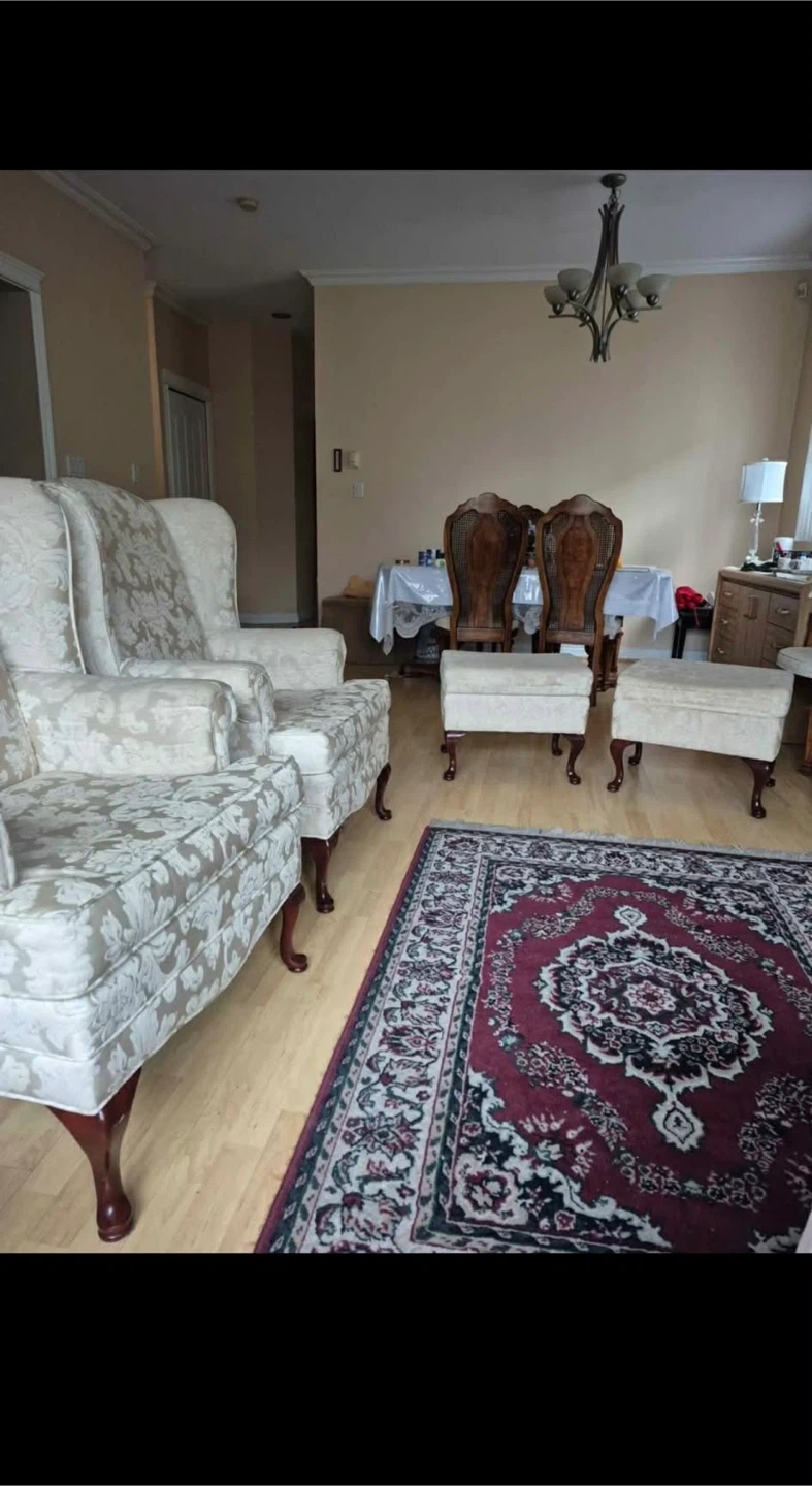 Selling a set of armchairs and ottomans with a lovely floral pattern. They're in good condition and would add a touch of elegance to any living room. Perfect for creating a cozy and inviting space!