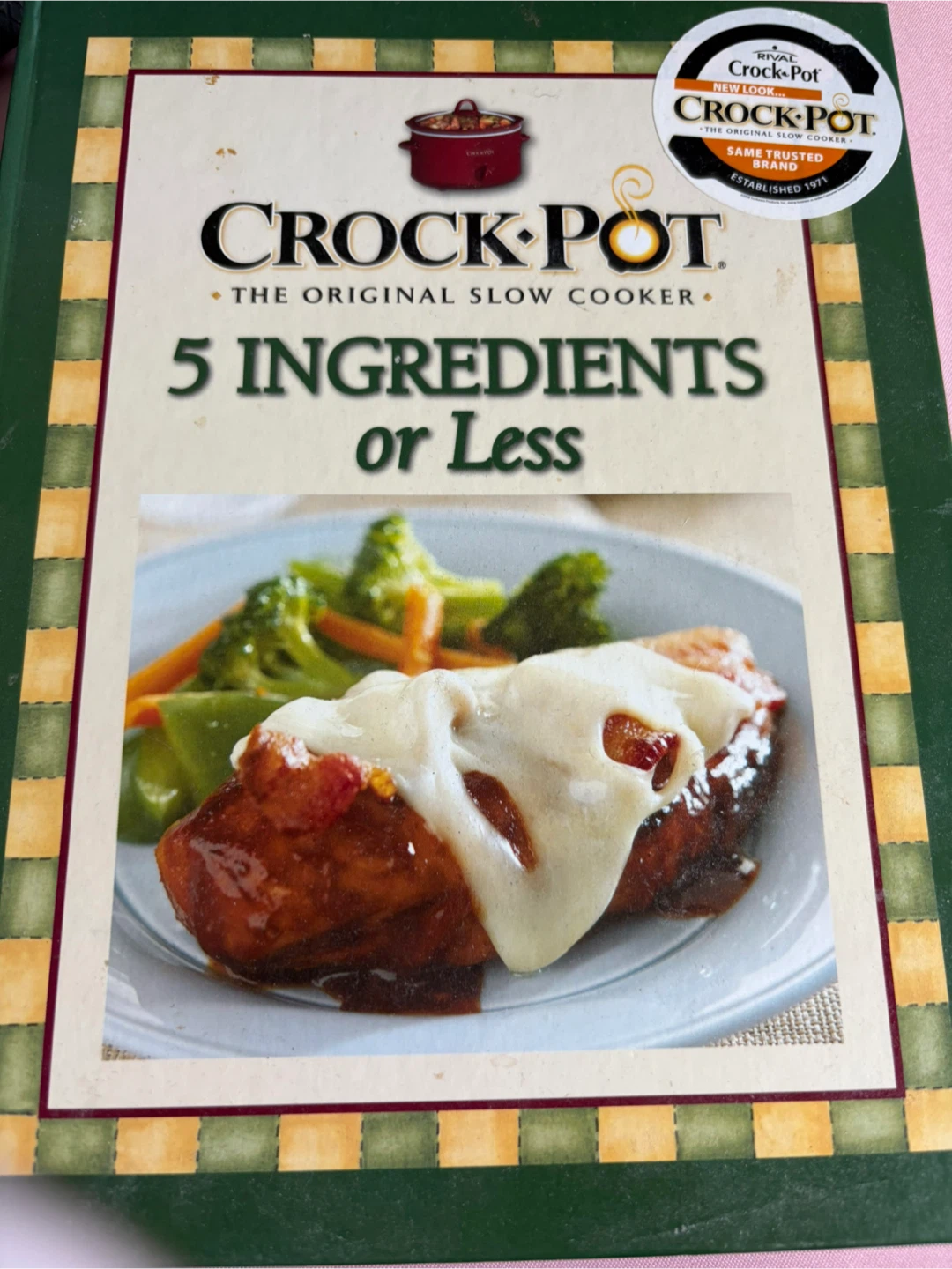 Giving away a Crock-Pot cookbook titled '5 Ingredients or Less'! It's the original slow cooker recipe book from a trusted brand established in 1971. Perfect for easy and delicious meals!
