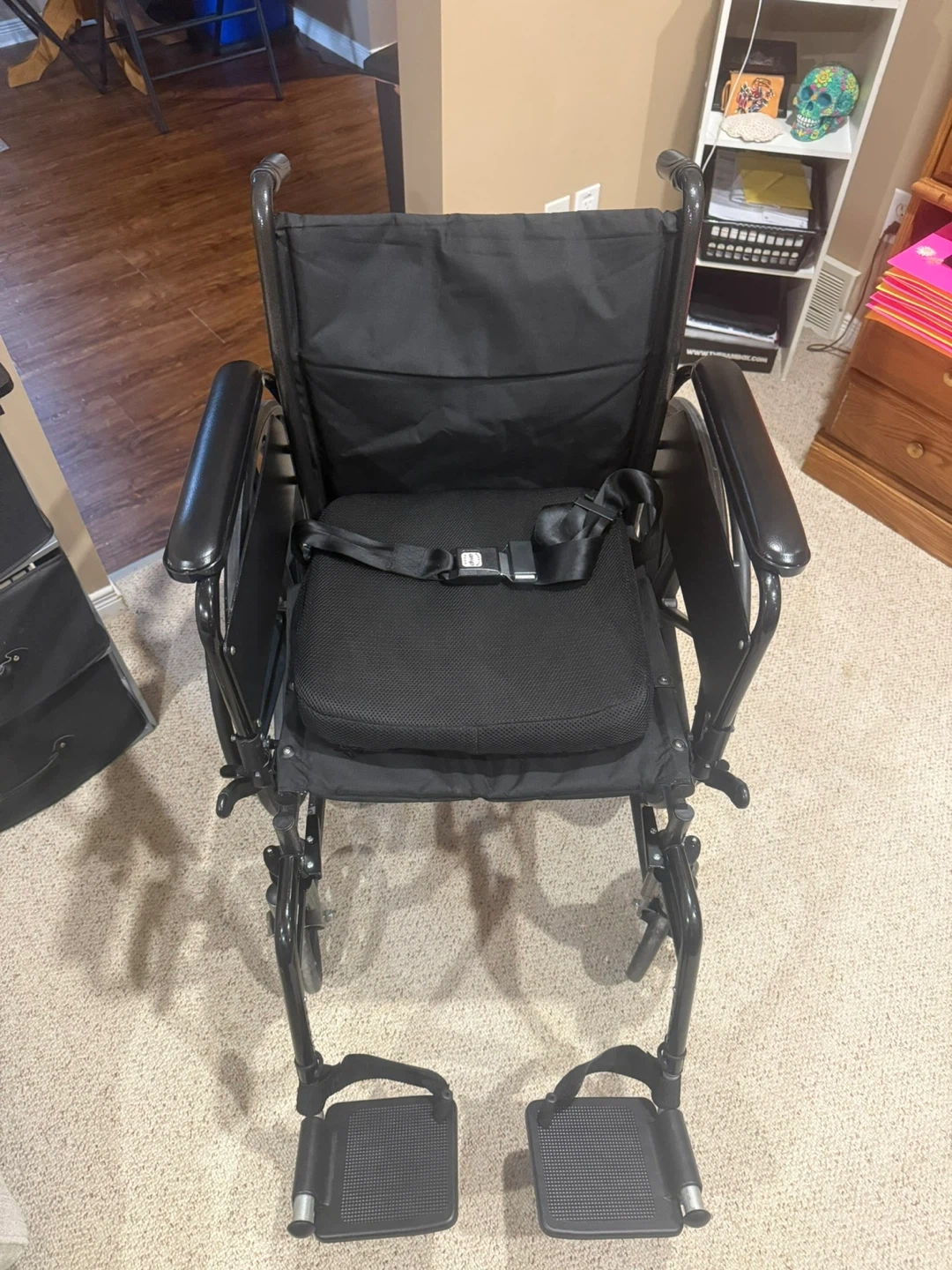 • Has padded armrests and swing-away footrests both have the ability to be removed.