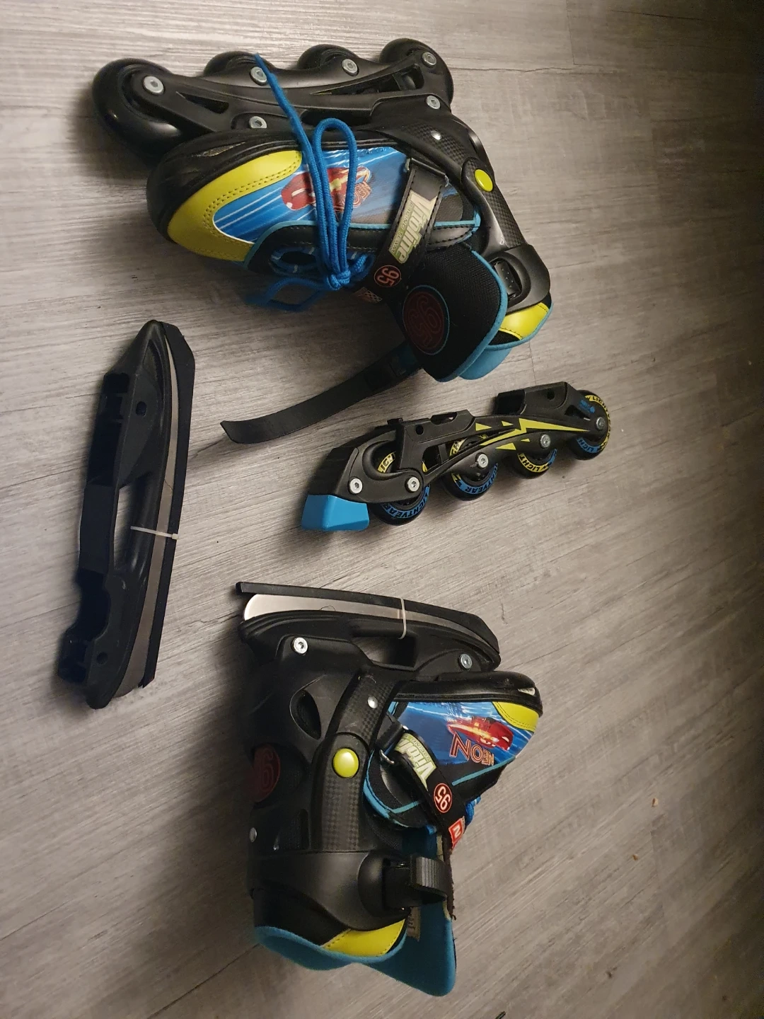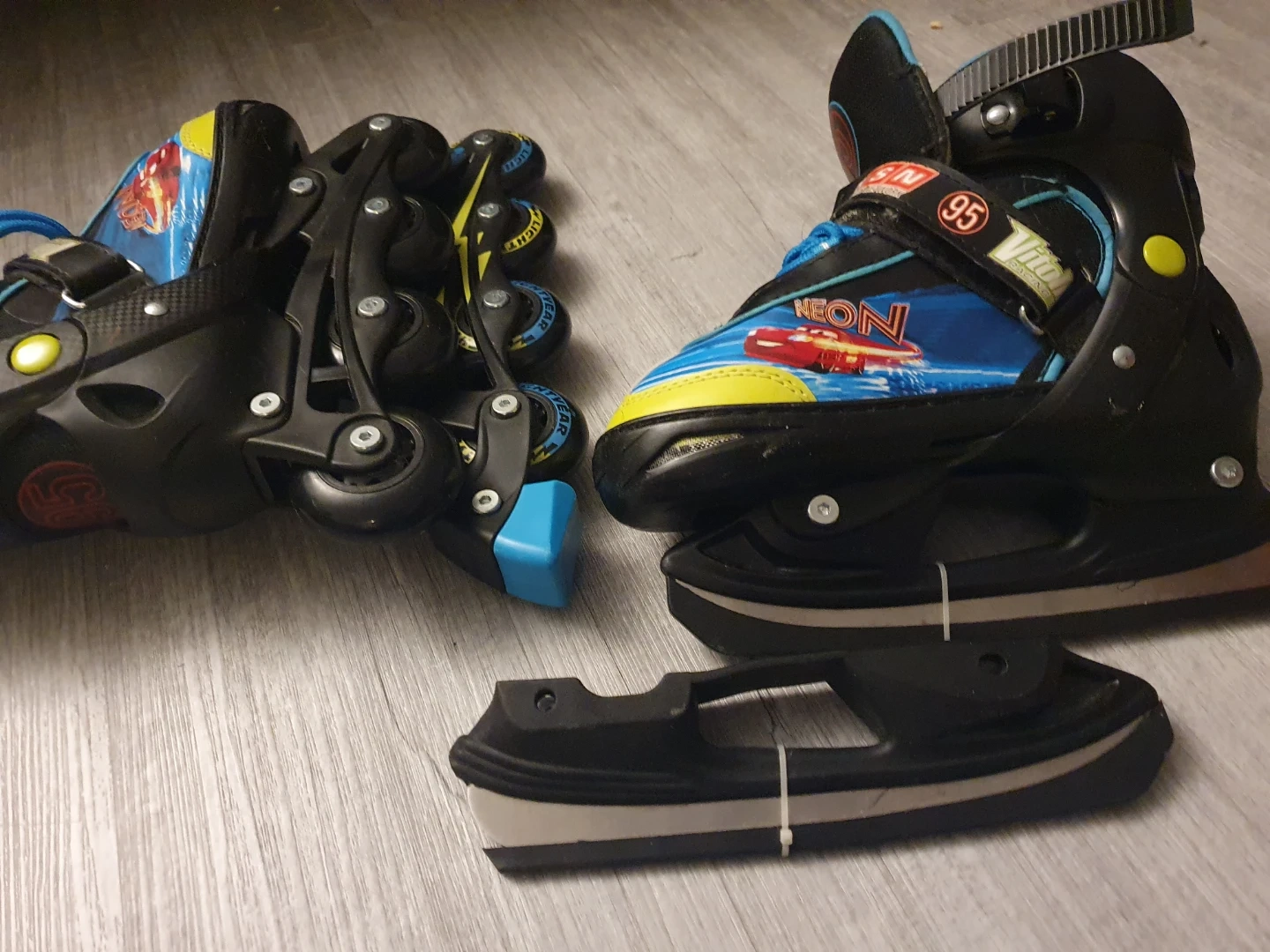 Selling a pair of new Neon inline and ice skates! They come with both the inline wheels and the ice skate blades, so you can switch them out depending on the season.
