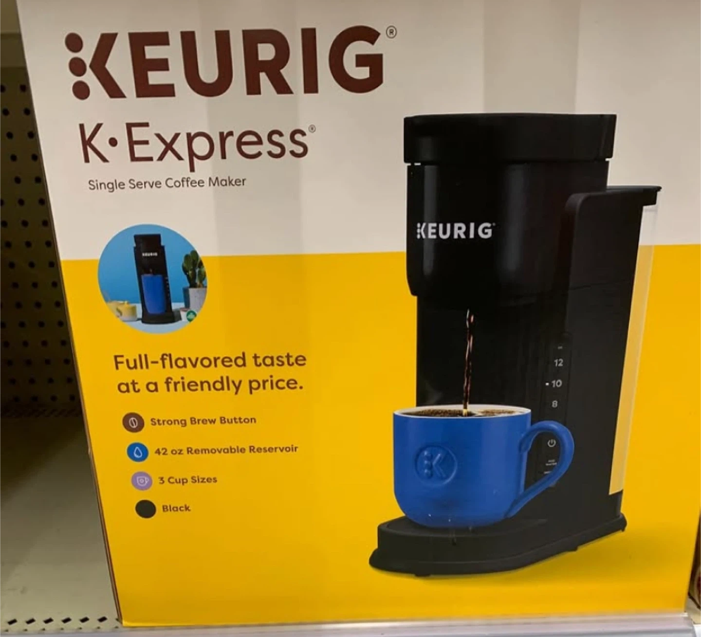 Get your caffeine fix with this Keurig K-Express single serve coffee maker. It features a strong brew button and a 42 oz removable reservoir. You can brew 3 different cup sizes. It comes in black. Retail $119