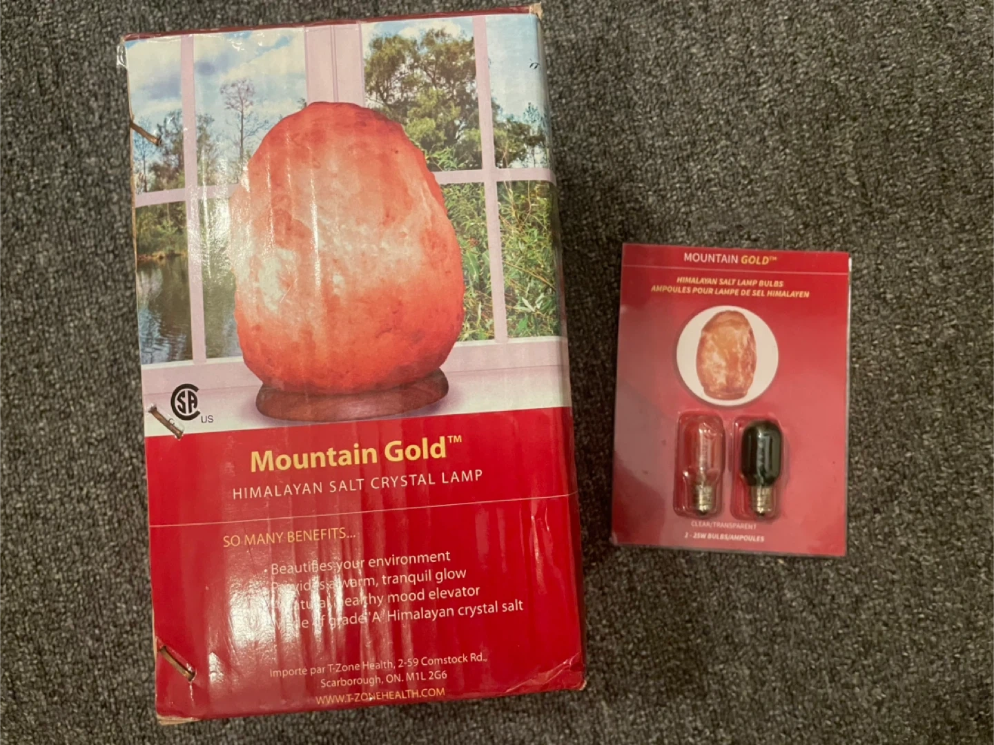 Selling a Mountain Gold Himalayan Salt Crystal Lamp. It beautifies your environment and provides a warm, tranquil glow. It's a natural healthy mood elevator and is made of Grade A Himalayan crystal salt. Comes with two 25W bulbs and the original box