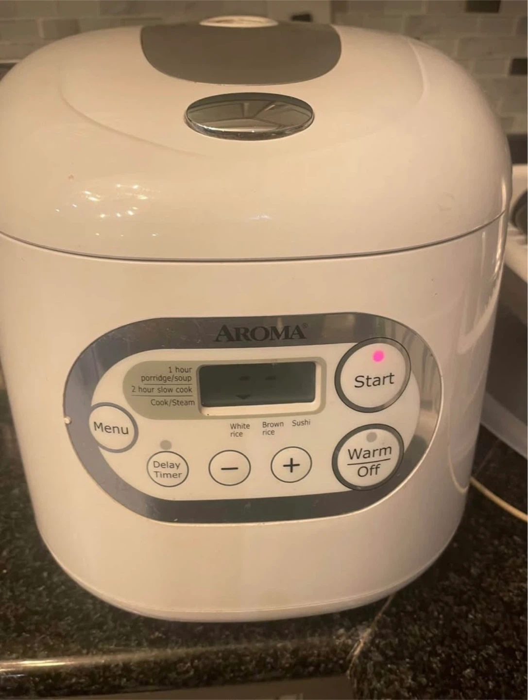 Selling an Aroma rice cooker! It has settings for white rice, brown rice, and even sushi rice. Also has a delay timer and settings for porridge and soup