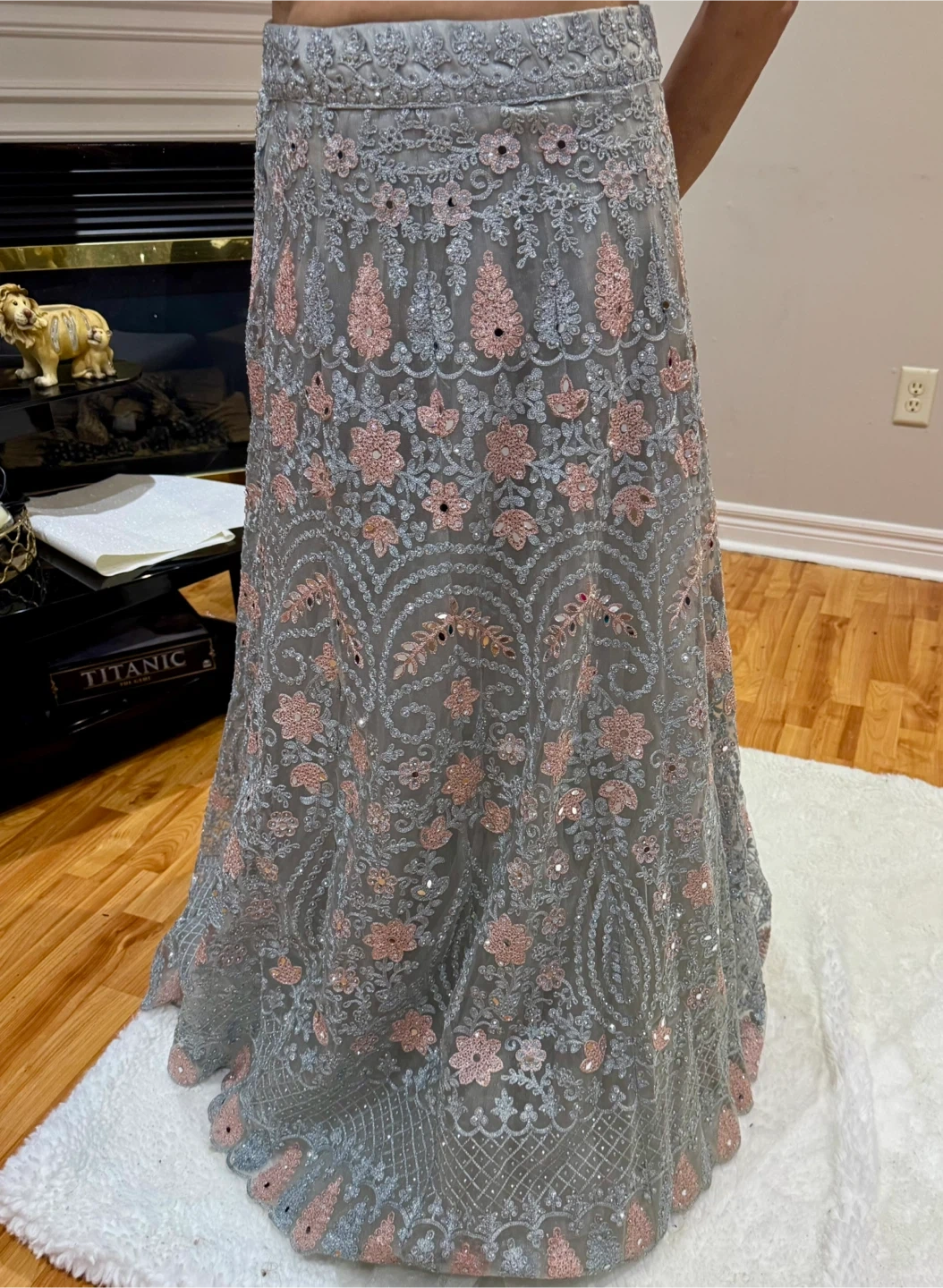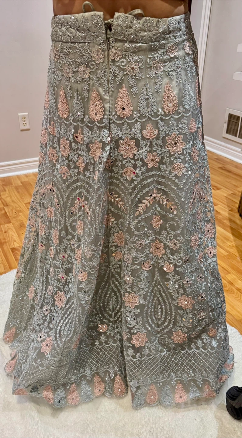 Beautiful embroidered lehenga skirt, perfect for special occasions! The intricate floral patterns and delicate detailing add a touch of elegance. It's in great condition and ready to make someone's event extra special