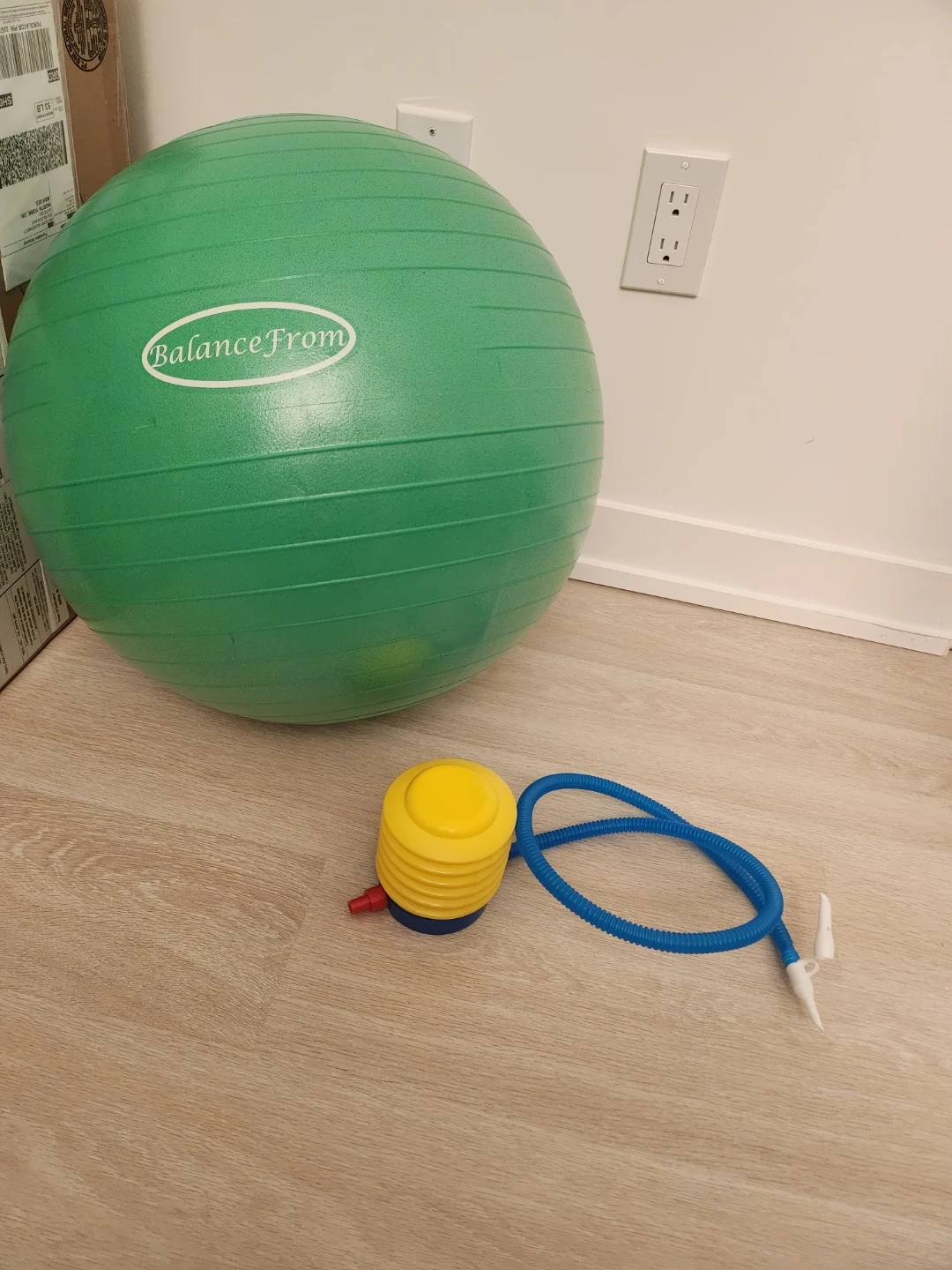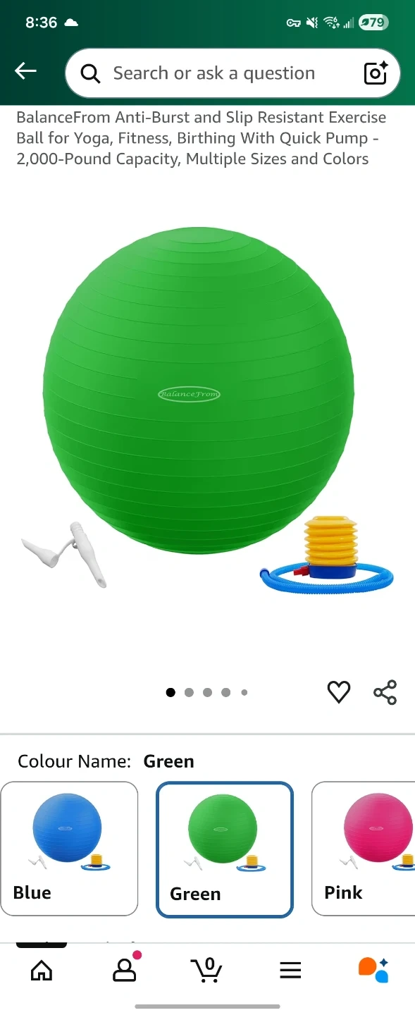 It's a vibrant green and comes with a handy pump for easy inflation. Perfect for yoga, fitness, or even birthing exercises. It supports up to 2,000 pounds, so you can feel secure during your workout!