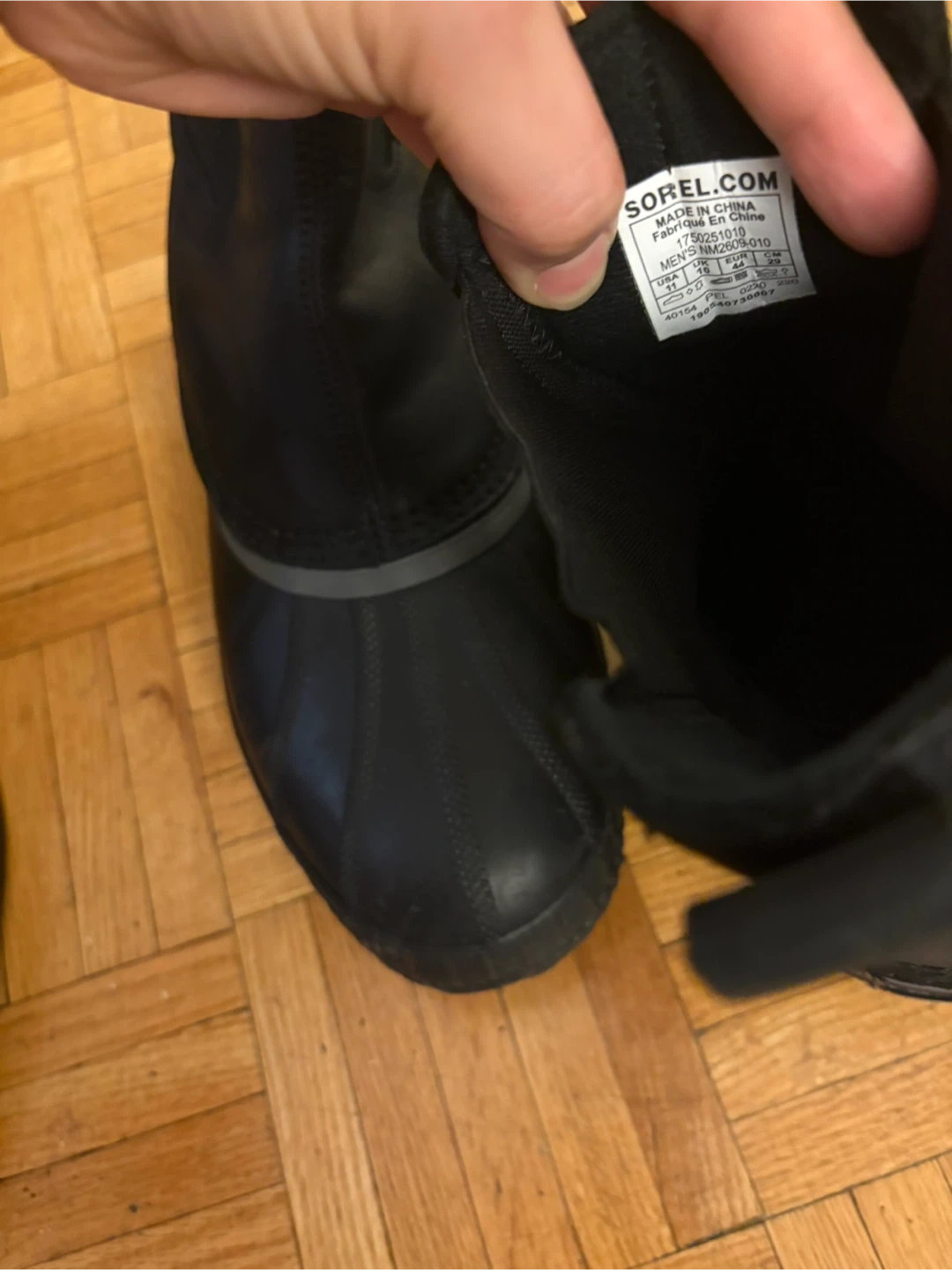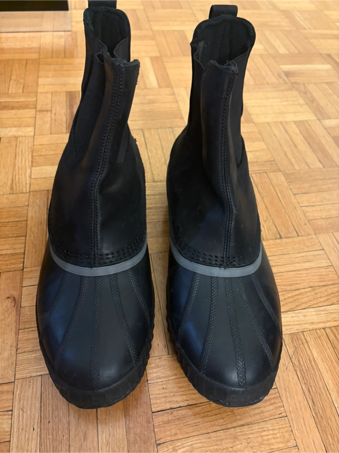 Selling a pair of Sorel Chelsea boots in black leather, size 10 US. They're in great condition and ready for the fall weather!
