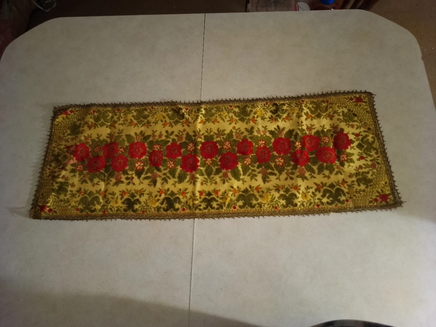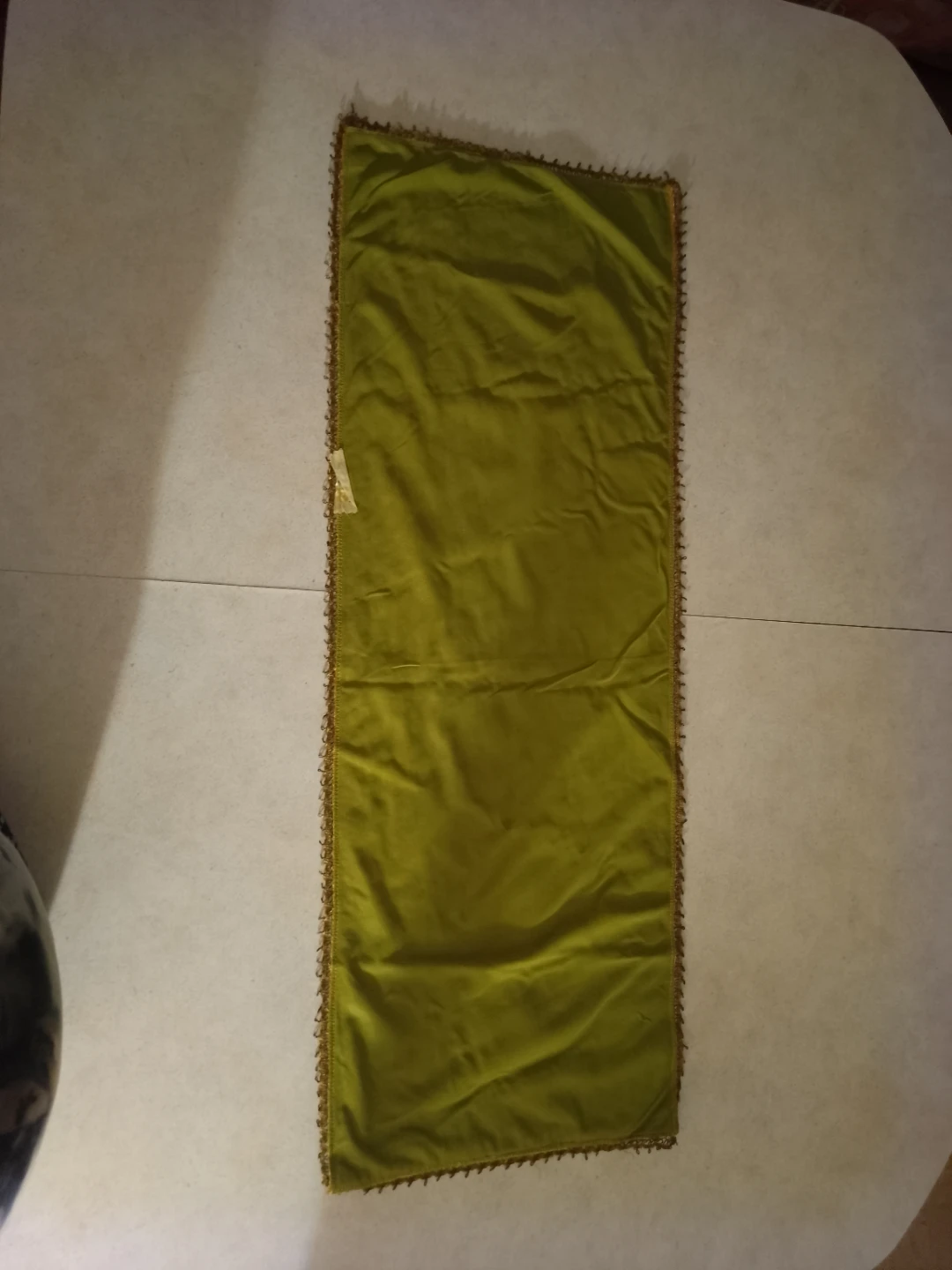Selling a beautiful Group Muylle table runner, made in Belgium. It's a lovely addition to any dining or living space. The material appears to be velvet with a decorative trim. It's in great condition and ready to enhance your home decor