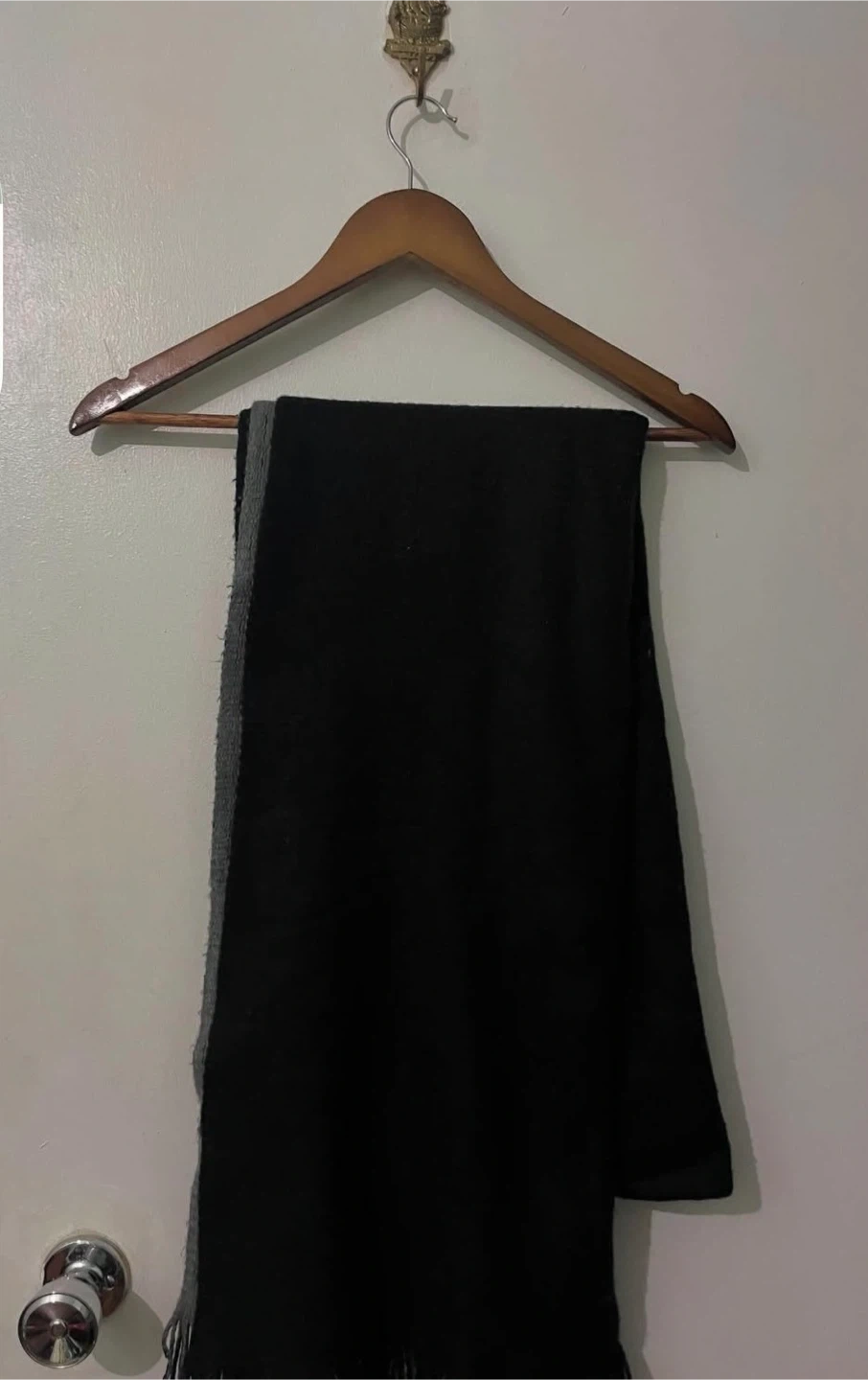 Selling a cozy scarf in black and grey! It's perfect for staying warm during the colder months. The material feels soft and comfortable against the skin. It's in great condition and ready to keep you snug!