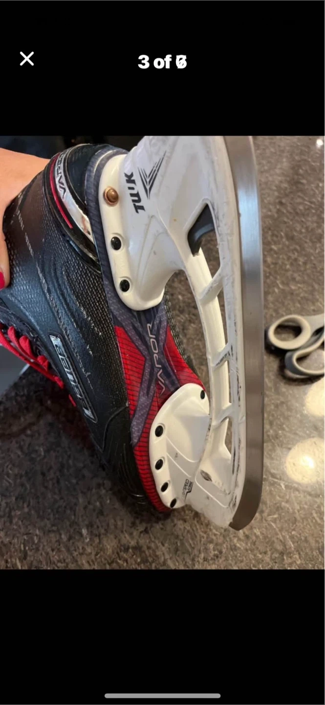 Sz 5D US 6 (women’s 7.5) 38.5 Overall in great condition and you can replace the blade when needed, which will be a while. Excellent skates, were $300 new. Welcome to come try them on.