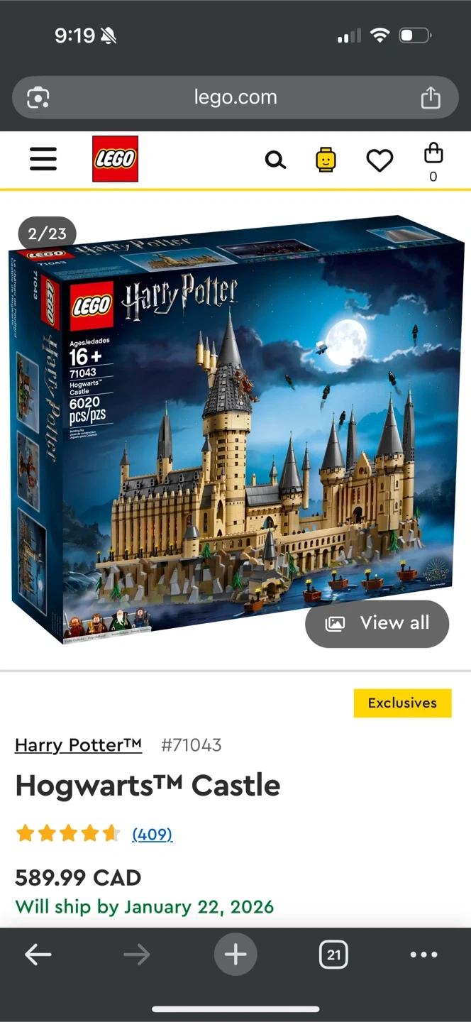 Selling a LEGO Harry Potter Hogwarts Castle set #71043. Originally priced at $589.99 CAD. Comes with everything, mini figs and tiny mini figs. Completely built, I have the instruction books and box, if wanted. a little dusty, nothing a good wipe will fix. Want gone as soon as possible. $350 or B. O.