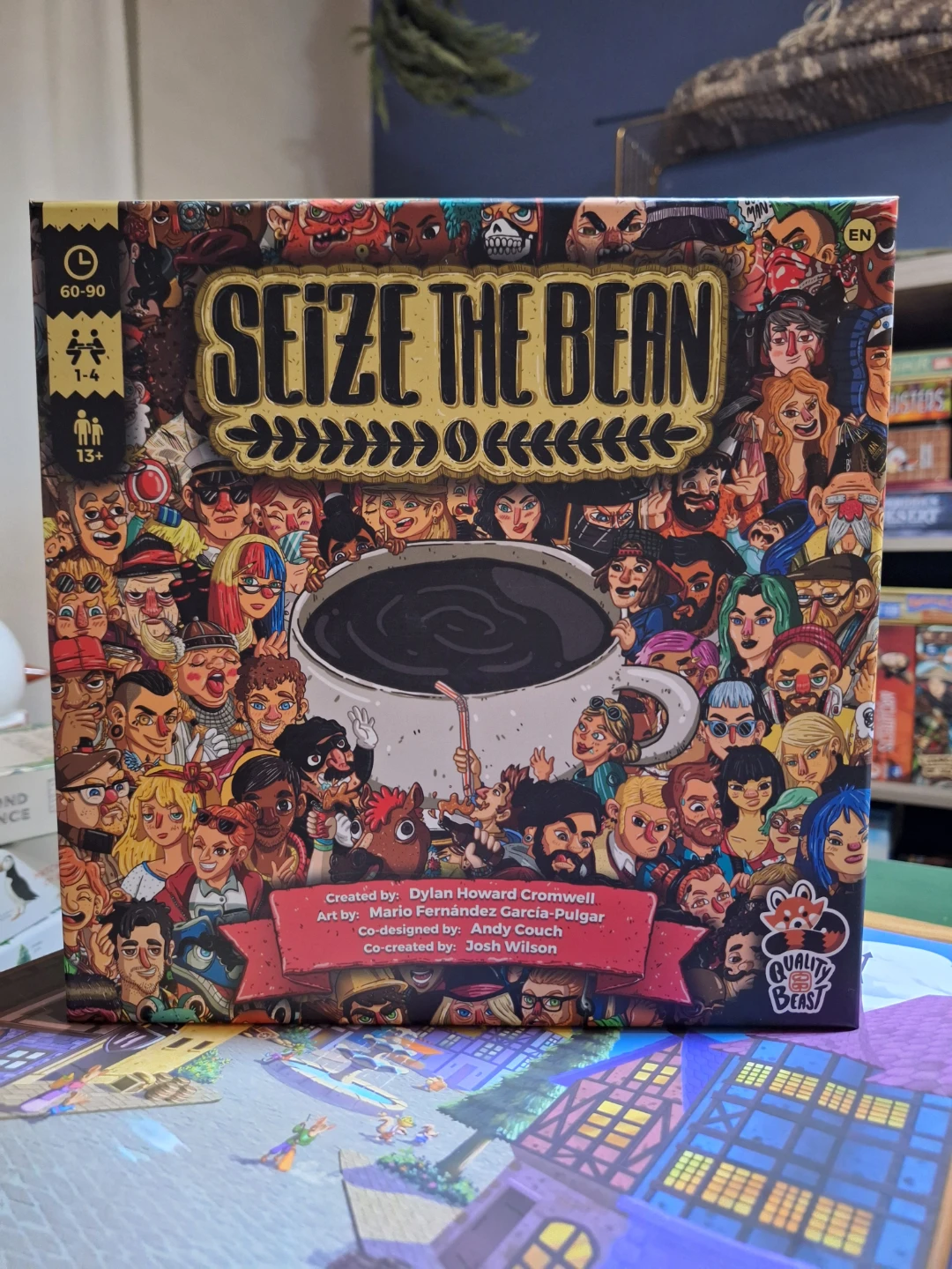 In Seize the Bean, players compete to be the best new café in Berlin. Reputation in both Berlin (in real life) and the game is earned from people — all the diverse customers you'll serve. You start only with your family and friends, and you have to prioritize your limited actions each turn to attract customers, upgrade your café's decor, expand your product line, and restock your resources in order to get the most reputation of all.