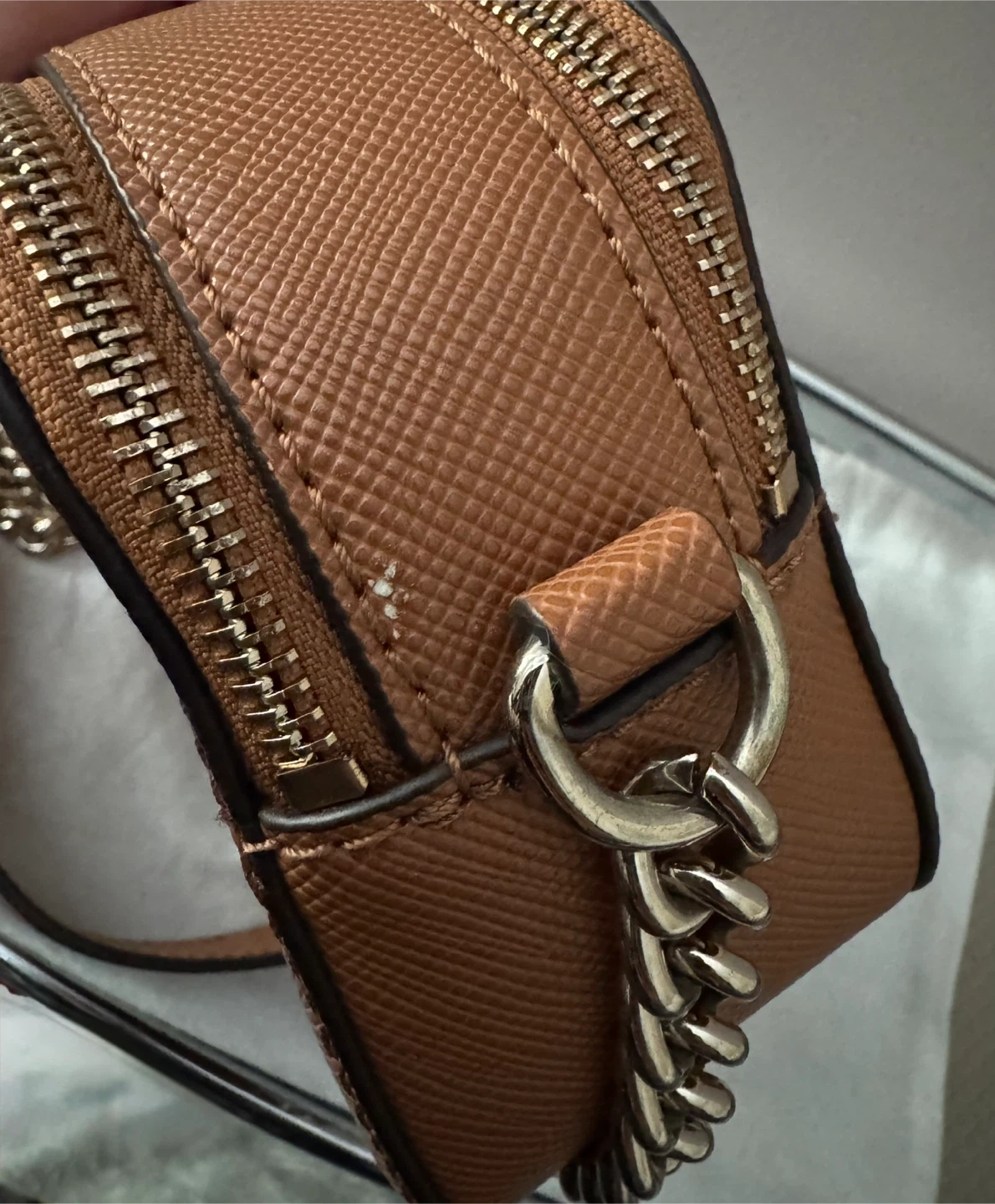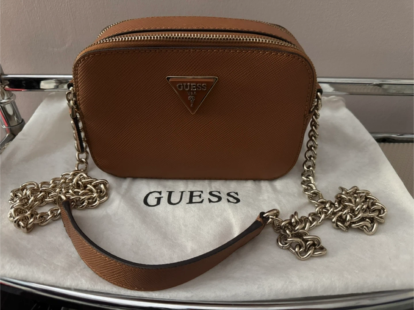 A stylish Guess crossbody bag in a lovely brown colour. It features a chain strap and comes with its original dust bag. Take note: there’s a small scuff on the bag from accidentally bumping into something as shown in the photos (but not a peeling) and overall it's in very good condition!