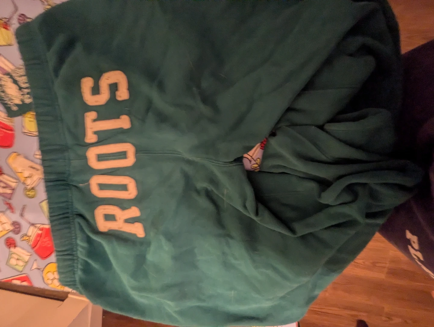 Selling a pair of Roots Athletics Canada sweatpants in size large! They're a nice, comfortable green colour and in good condition. Perfect for lounging around the house or running errands!