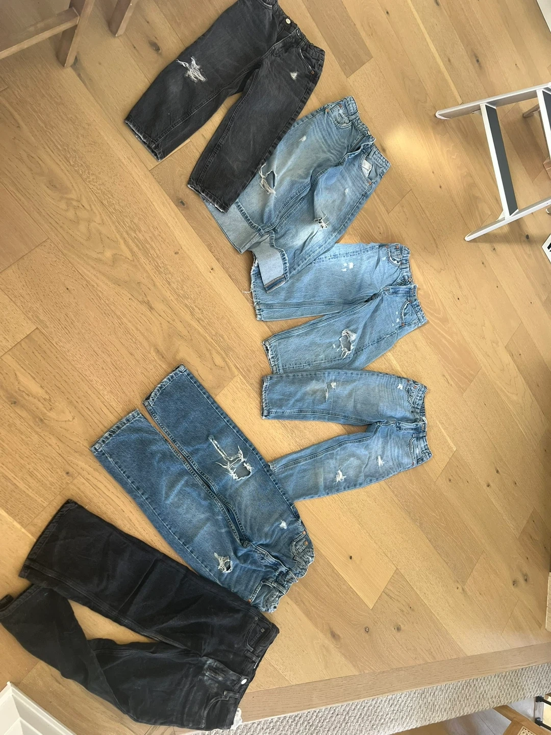Selling a pair of Zara Kids jeans in a distressed denim style. They're perfect for a trendy look! These jeans have a cool, worn-in vibe with intentional rips and fading. Great for everyday wear! Size 8 and 9