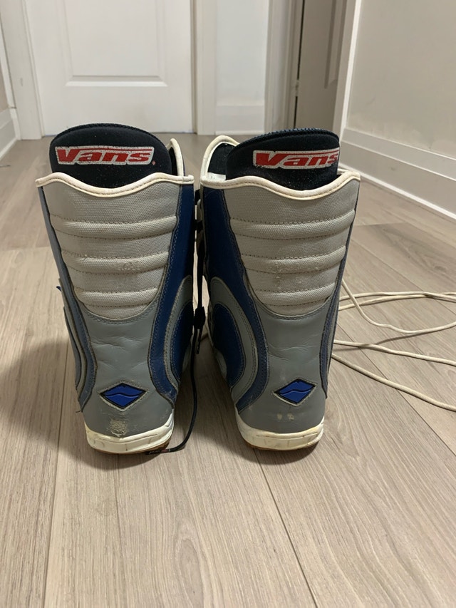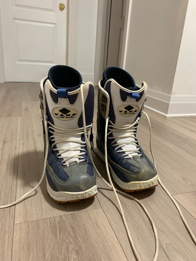 Good quality snowboard boots made by Vans. These boots are apart of the “World Traveler” series. They have some ware but they still perform great when boarding at a park, hill or mountain.