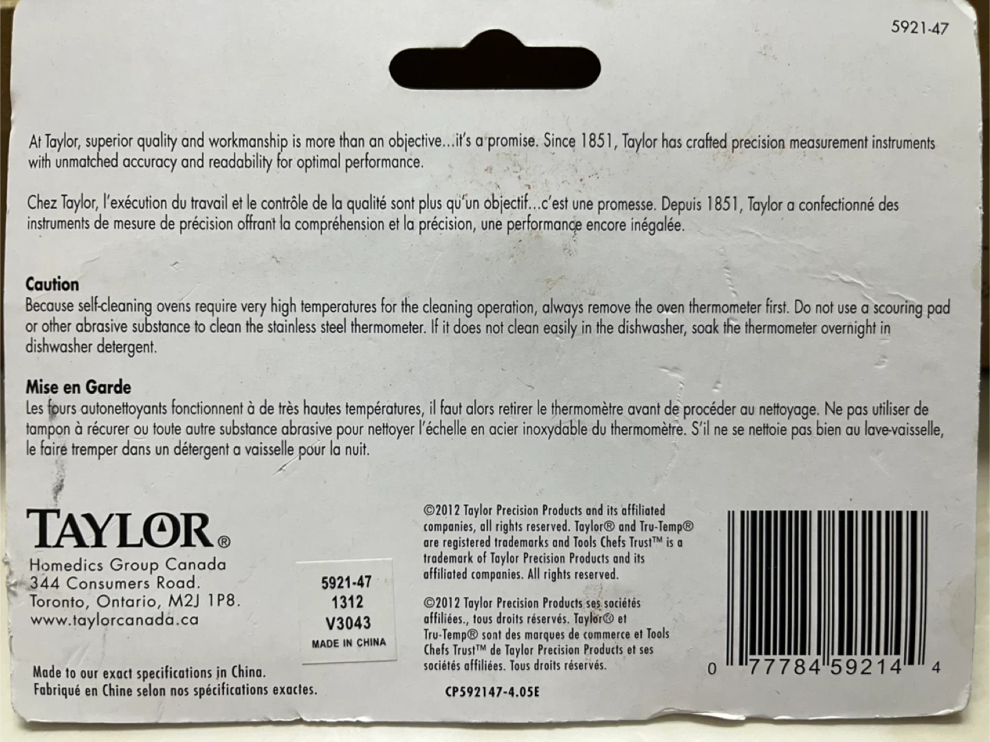 - Taylor Commercial Oven Thermometer