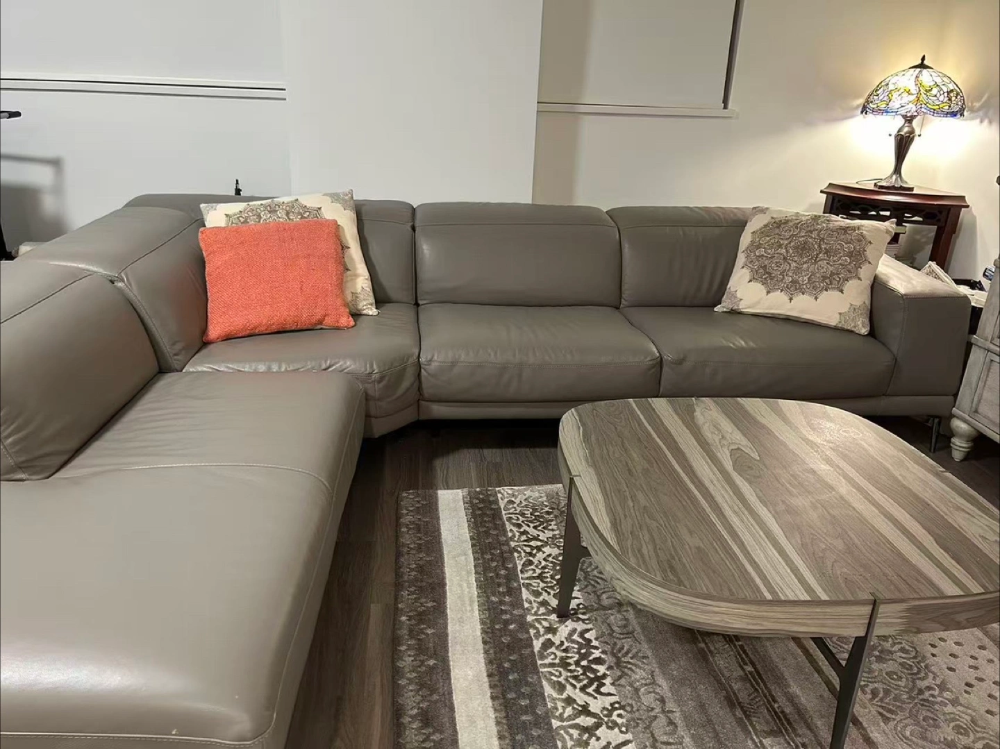 Selling a comfortable grey leather sectional sofa. It's in great condition and would be a wonderful addition to any living room! The neutral colour makes it easy to match with any decor