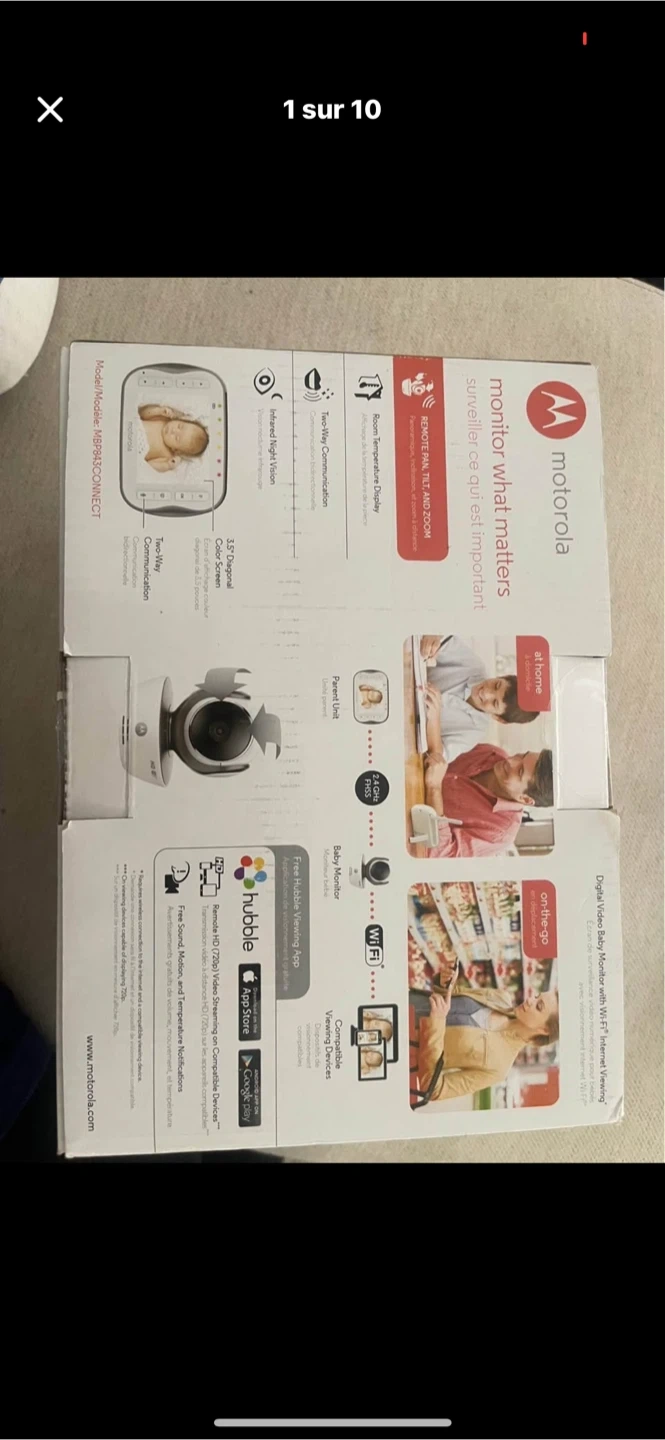 Je vends une caméra de surveillance pour bébé Motorola MBP853CONNECT. Il est tout neuf et dans sa boîte d'origine!