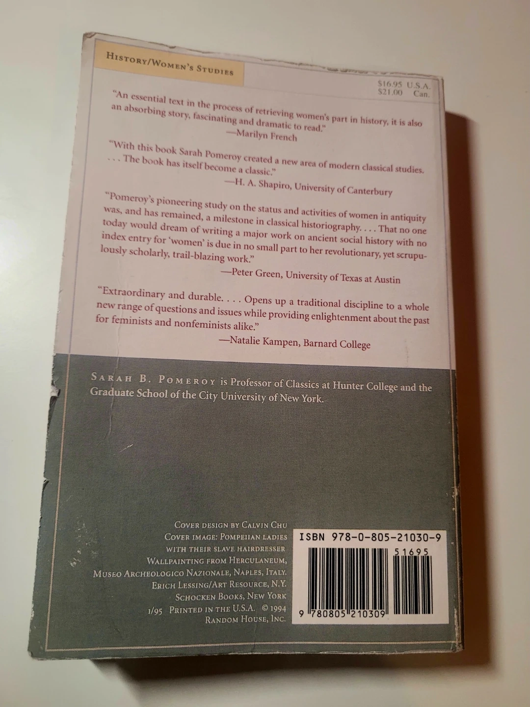 Selling the book "Goddesses, Whores, Wives, and Slaves: Women in Classical Antiquity" by Sarah B. Pomeroy. It's a fascinating read for anyone interested in history and women's studies. The cover design is by Calvin Chu. Light water damage, but it does not affect the words.