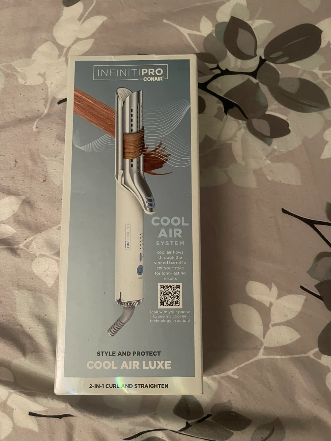 Je vends un INFINITIPRO par Conair Cool Air Luxe 2-en-1 pour boucler et lisser les cheveux. Il est neuf dans sa boîte. Le système d'air frais permet de fixer votre coiffure pour des résultats durables. Scannez le code QR avec votre téléphone pour voir la technologie d'air frais en action!