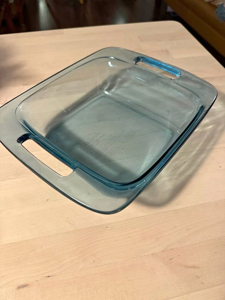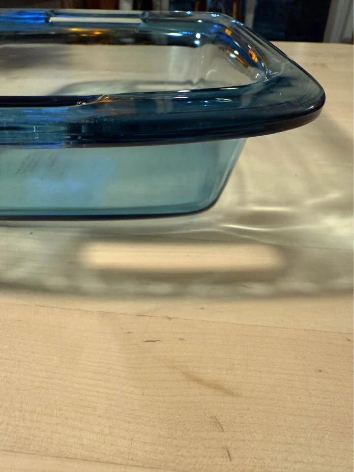 This is a Pyrex C-222 2-quart Easy Grab Atlantic Blue glass baking dish
