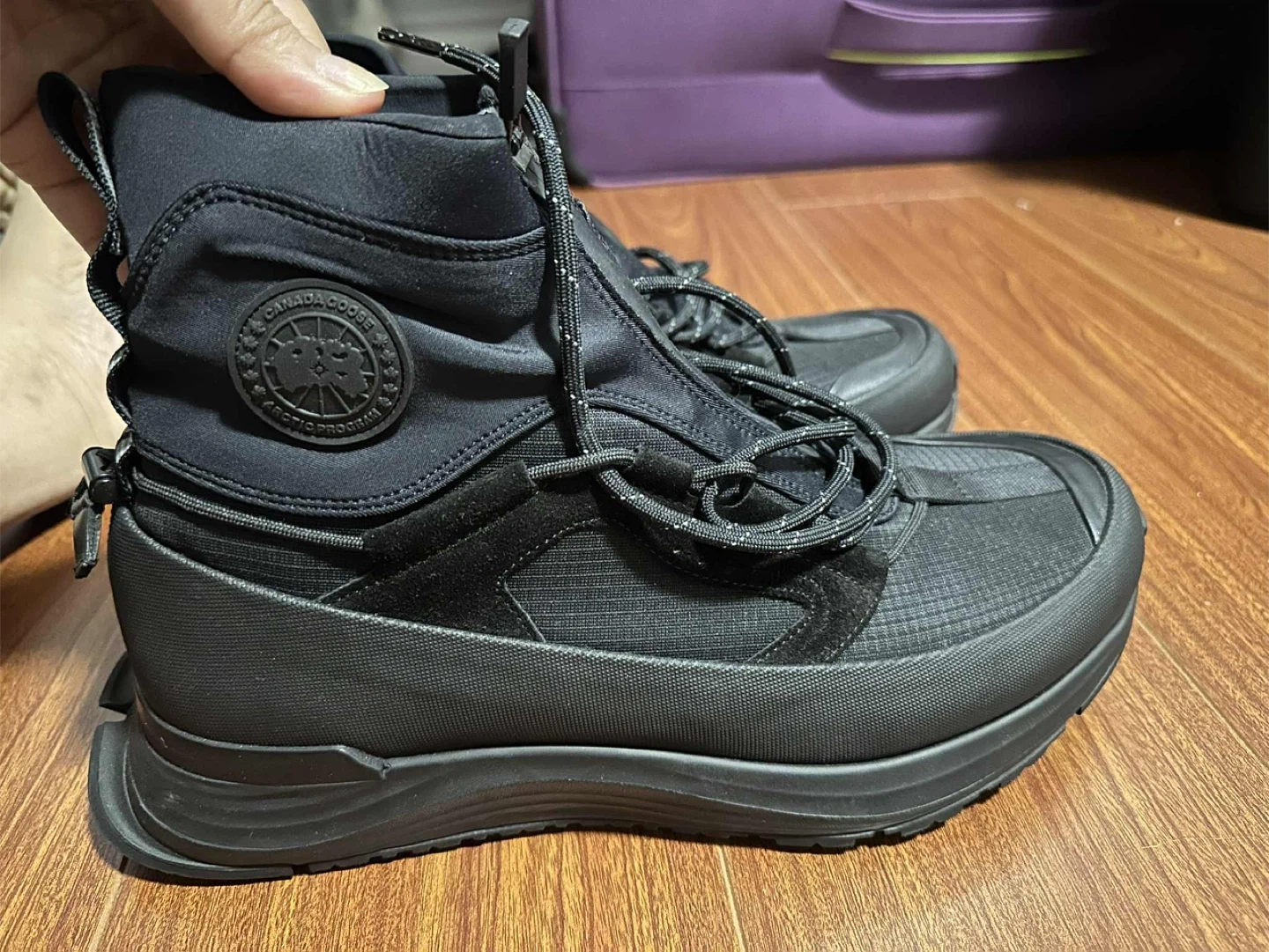 Selling a pair of Canada Goose Tundra Boots in black. They are in great condition and ready for the Canadian winter! These boots feature a front zipper and lace-up closure for a secure fit.