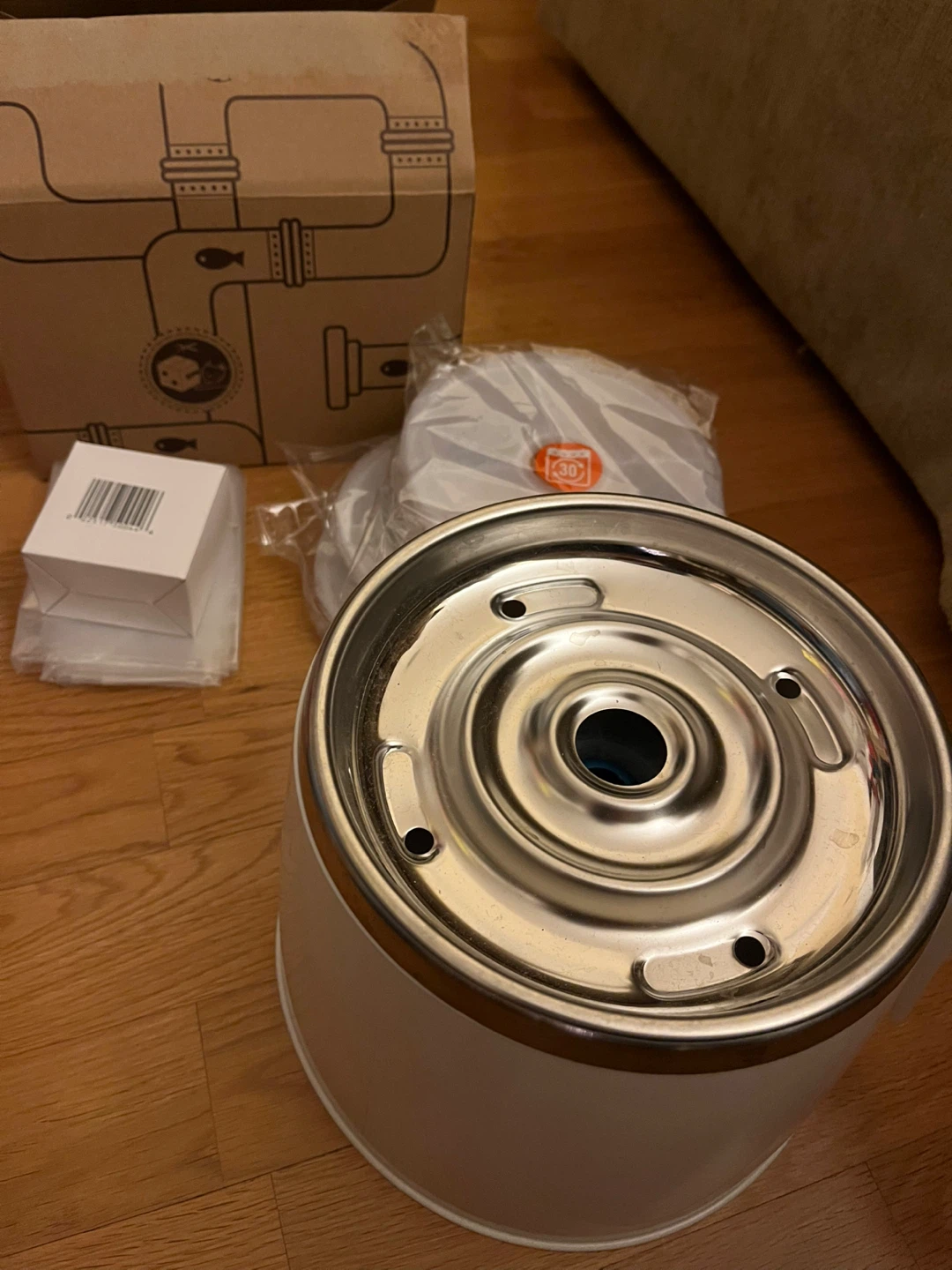 Selling a stainless steel cat water fountain! It's brand new condition and comes with 4 extra filters. Keeps the water fresh and encourages your cat to drink more.