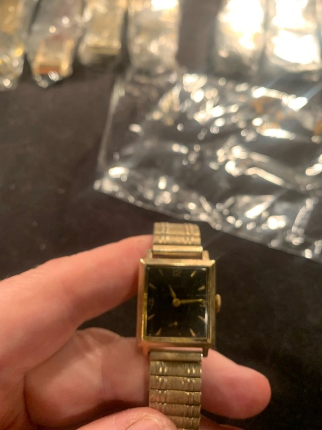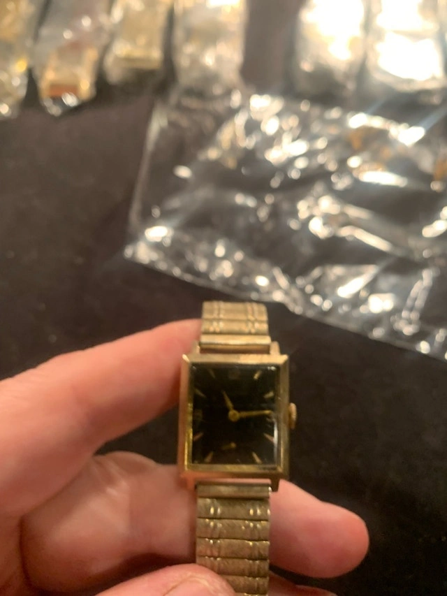 This is a used Seiko watch with a rare black face and gold plating that requires some TLC. The watch is being sold as is, with its unique vintage charm. There are some scratches on the crystal and wear on the gold plating that adds character to the watch. These little imperfections tell a story, don't they? If this advertisement is still posted, rest assured, the watch is still available, ready to find its way onto your wrist! Will consider trades, the ole dicker and offers.