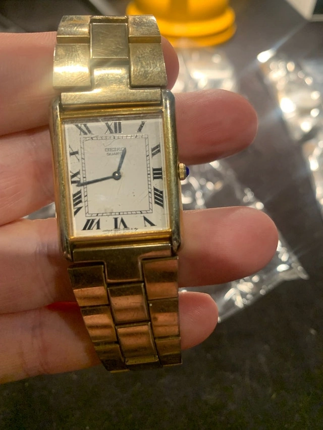 Check out this rare SEIKO timepiece, featuring a gold-plated finish and a clean white face with a crystal display, perfect for collectors and enthusiasts alike! It's a lovely watch, and aging gracefully. Specifications: - Brand: SEIKO - Material: Gold Plate - Face Colour: White - Display: Crystal Isn't it fascinating how time flies? If the ad's still up, the watch is still available! We are accepting reasonable offers, obo, trades and some of the dickering.