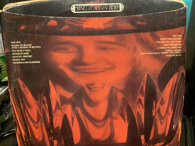 Used Rod Stewart "Sing It Again Rod" 1973 original LP in very good condition, featuring great songs. The cover is designed like a glass of whiskey with Rod Stewart's face in the glass. The vinyl itself is in good shape, showing some signs of wear but plays well. A true piece of music history for any collector!
