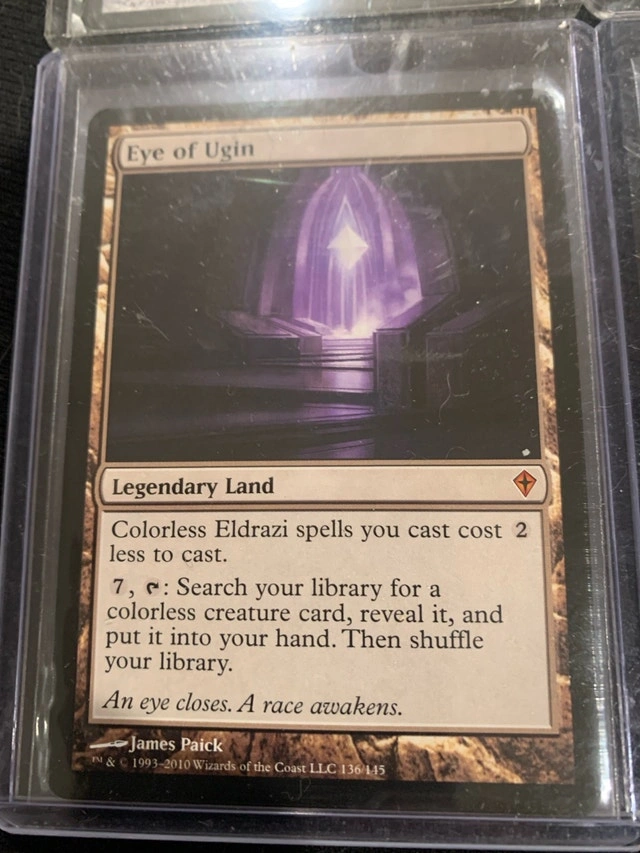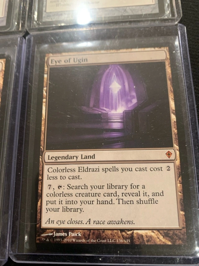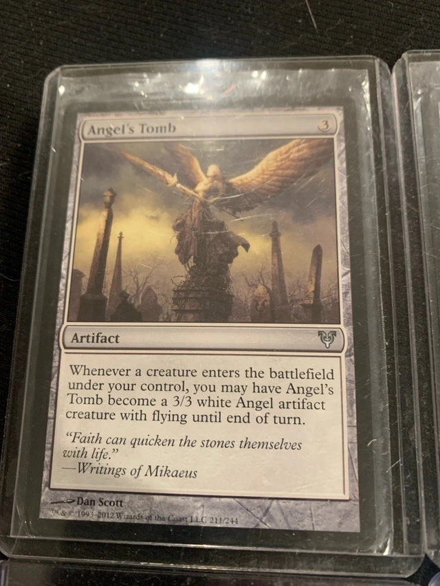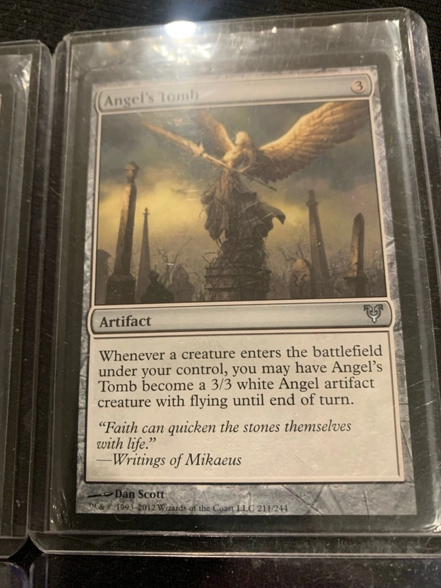 For sale are Magic: The Gathering cards, specifically two Angel's Tomb artifacts and two Eye of Ugin legendary lands, perfect for burn, graveyard death triggers, and free creature drops. The idea with these cards is to burn your way to luxury and fun good times just based on these two cards! These cards have been loved but remain in ex condition, ready to enhance your deck's strategic play. Card Specifications: * Angel's Tomb: Artifact that can become a 3/3 Angel creature. * Eye of Ugin: Legendary Land that reduces the cost of Colorless Eldrazi spells. Based on current Kijiji, eBay and Karrot and similar online marketplace pricing, these cards are priced to sell. Considering their condition, I've aimed for a competitive price. Looking forward to finding these cards a new home where they'll be part of some epic battles!