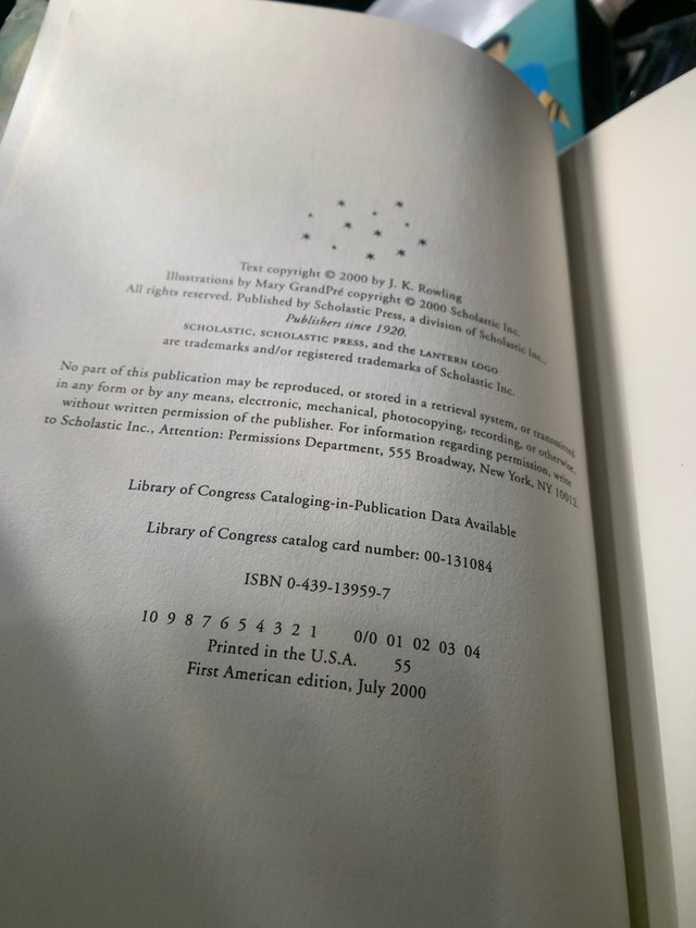 Own a piece of literary history with this TRUE first edition of Harry Potter and the Goblet of Fire! This hardcopy is in good condition, showing some signs of its age, but it's a treasure for any collector. A must-have for any avid Harry Potter fan.