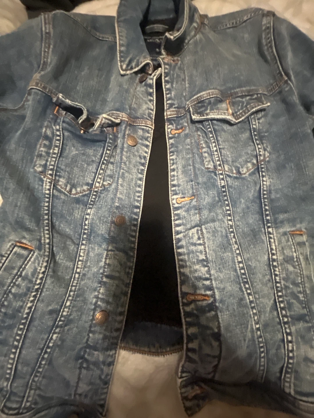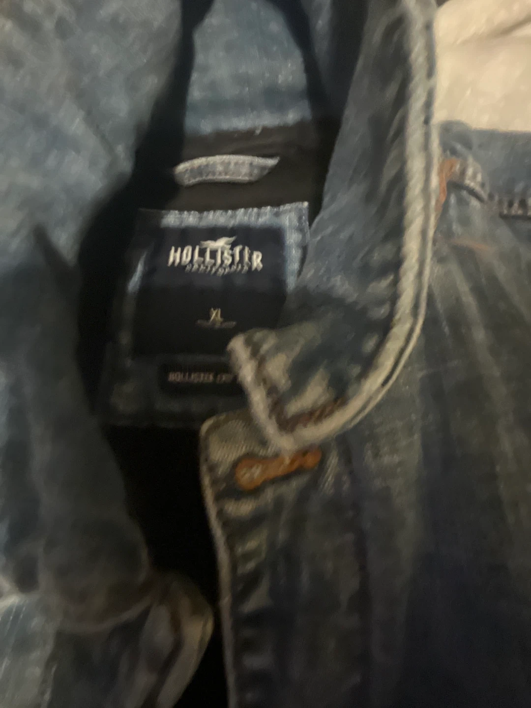 I'm selling a Hollister denim jacket in size XL. It's in great condition and ready for a new owner!