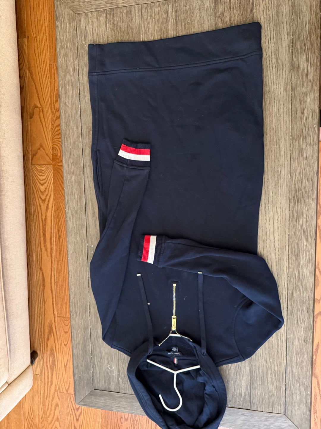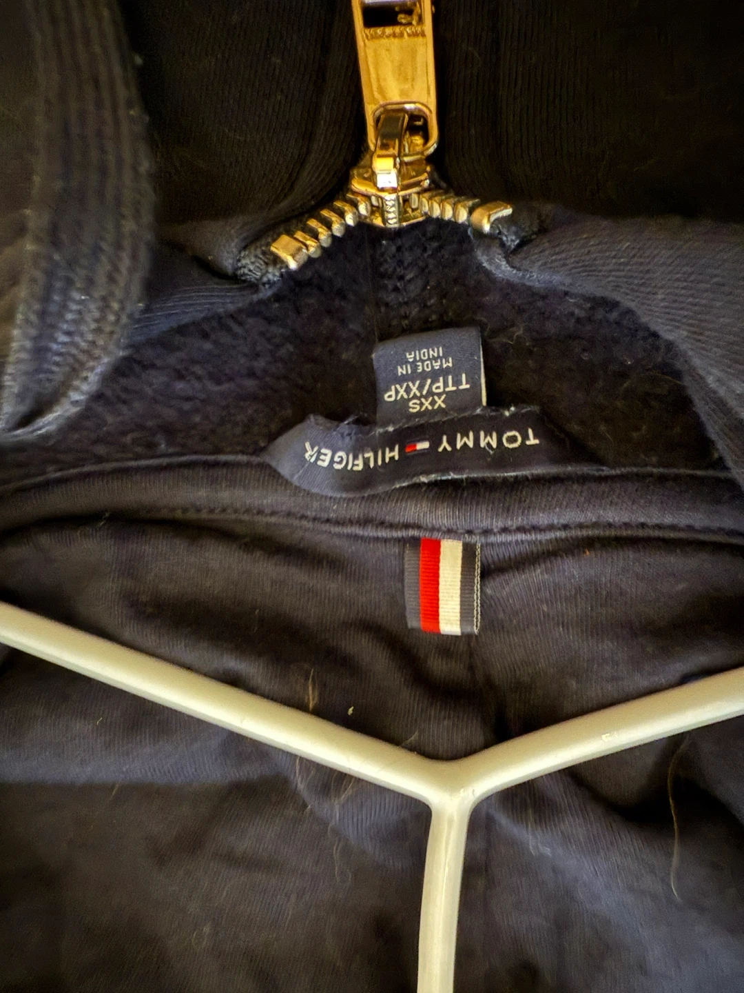 Here's a Tommy Hilfiger hoodie in size XXS! It's a navy blue colour and features a zipper. Perfect for layering or wearing on its own