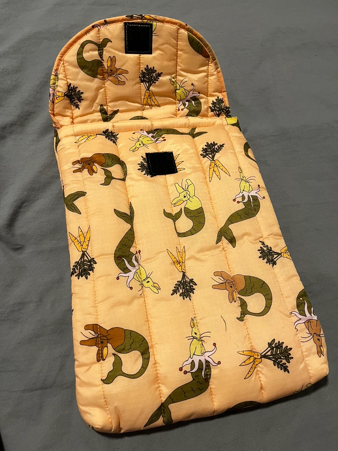 BAGGU Puffy Laptop Sleeve in a fun carrot and mermaid print! This sleeve is great for protecting your laptop while adding a touch of whimsy to your day. Perfect for students or anyone on the go, its a rare discontinued print completely new was just stored never used so no stains or damage.