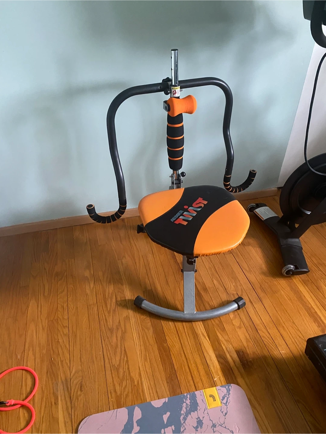 Selling an AB Doer Twist exercise machine in great condition! It's perfect for working out your core and getting in shape. The seat is orange and black, and the frame is black and silver. It's a great addition to any home gym