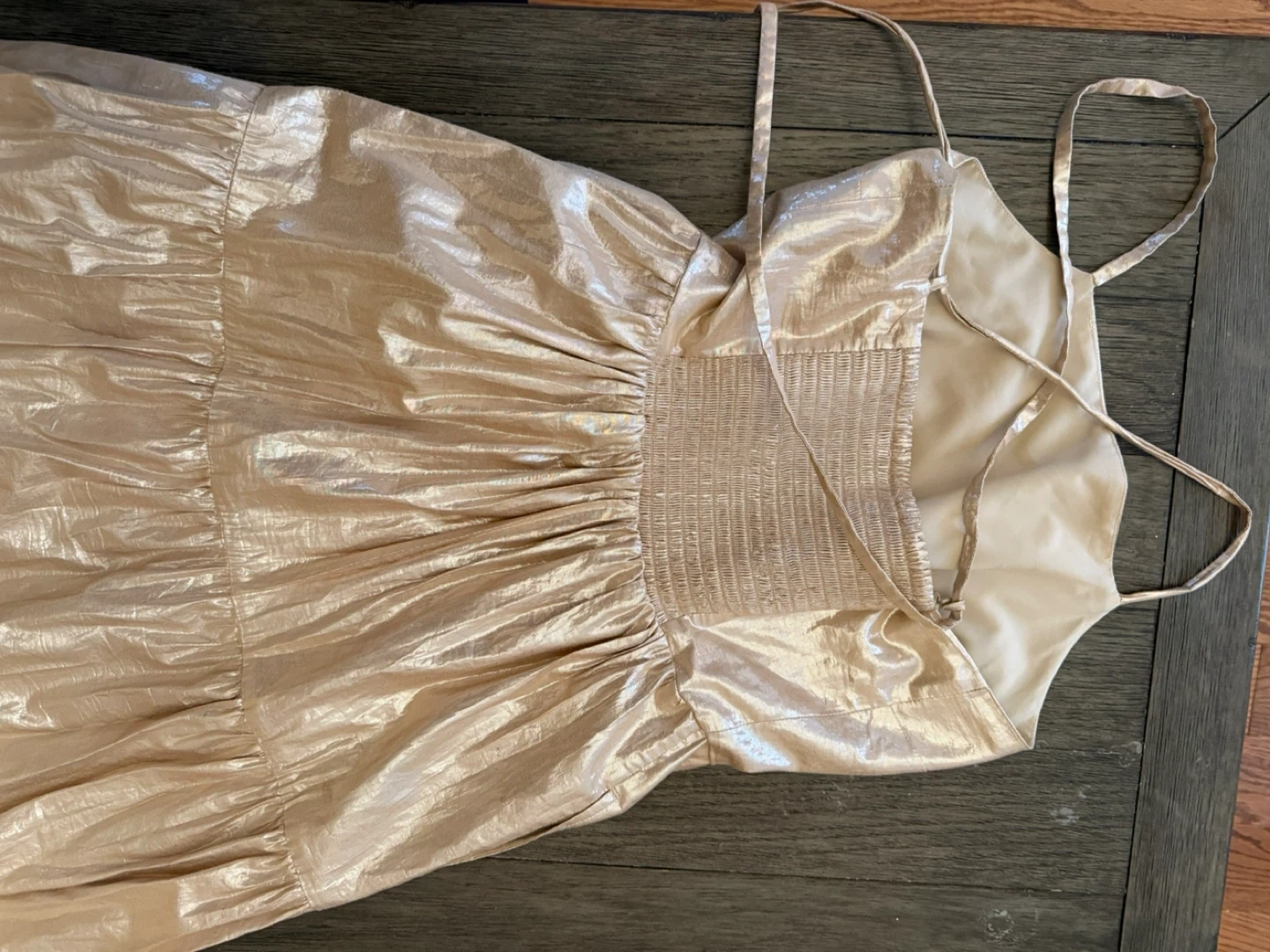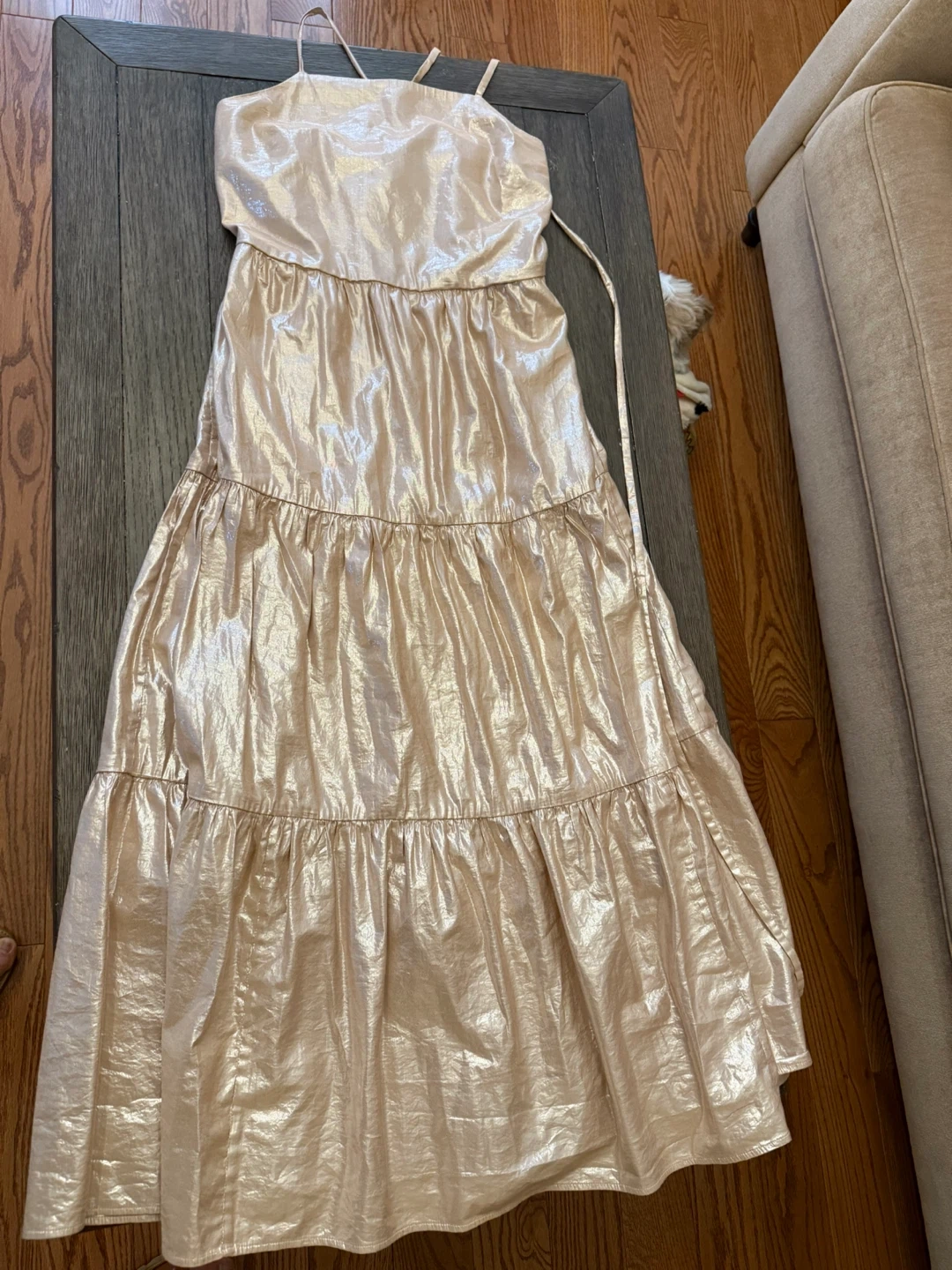 Selling a lovely gold dress from GAP in size small! It has a tiered design and a comfortable fit. Perfect for a night out or a special occasion