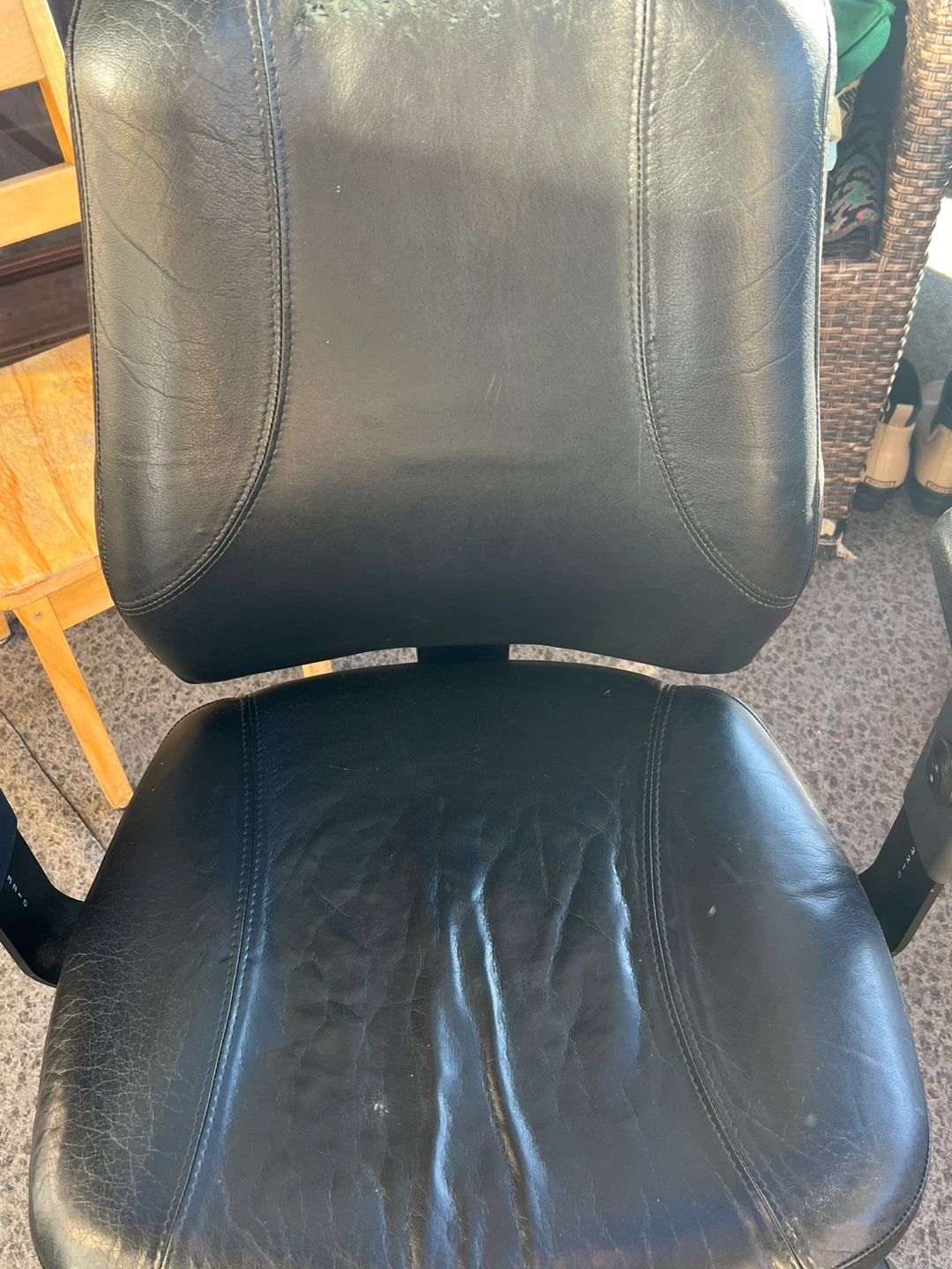 Selling a black office chair that's in used condition. It's still very functional, all wheels rolling properly and comfortable for everyday use at your desk or home office. Perfect for anyone needing a reliable chair!