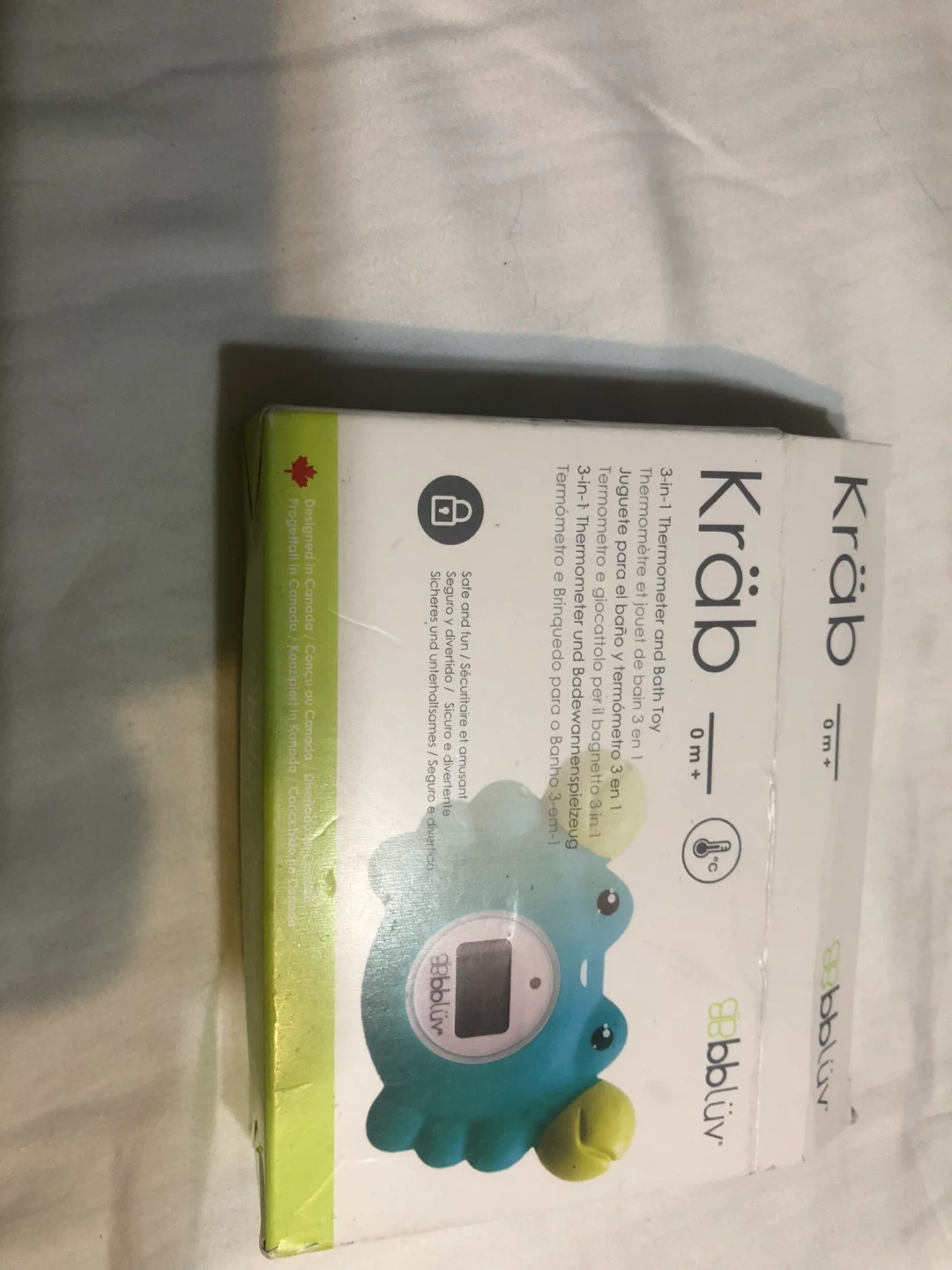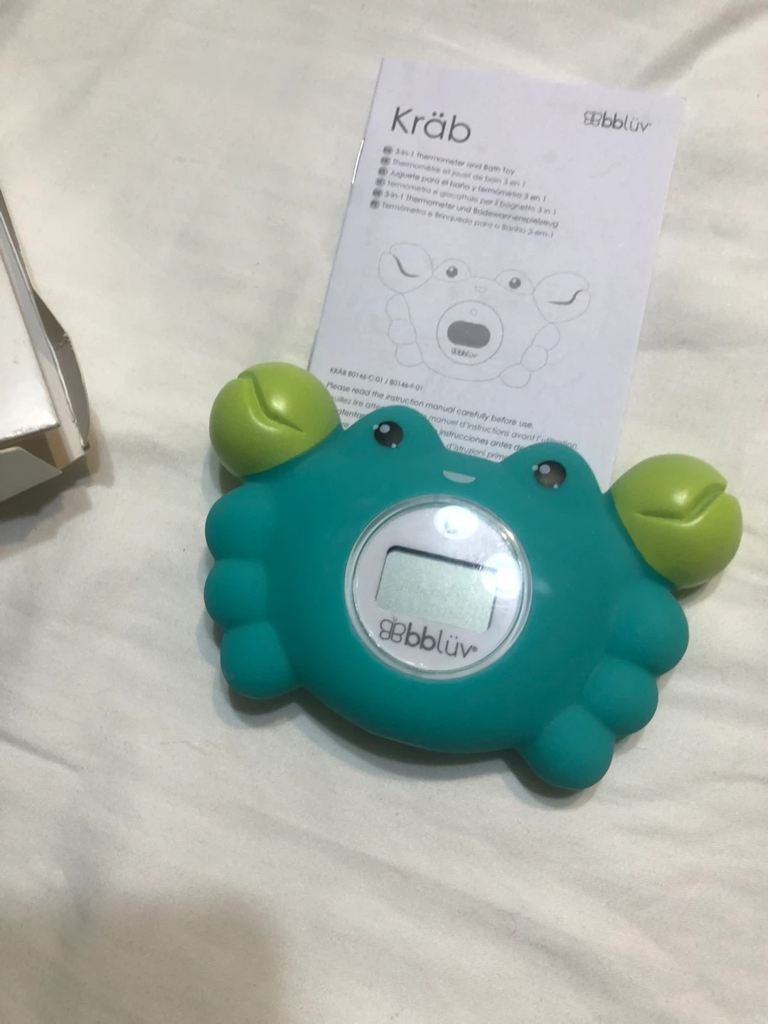 This is a bblüv Kräb 3-in-1 Thermometer and Bath Toy. It's designed for 0 months and up. It's a safe and fun way to check the bath temperature for your little one!