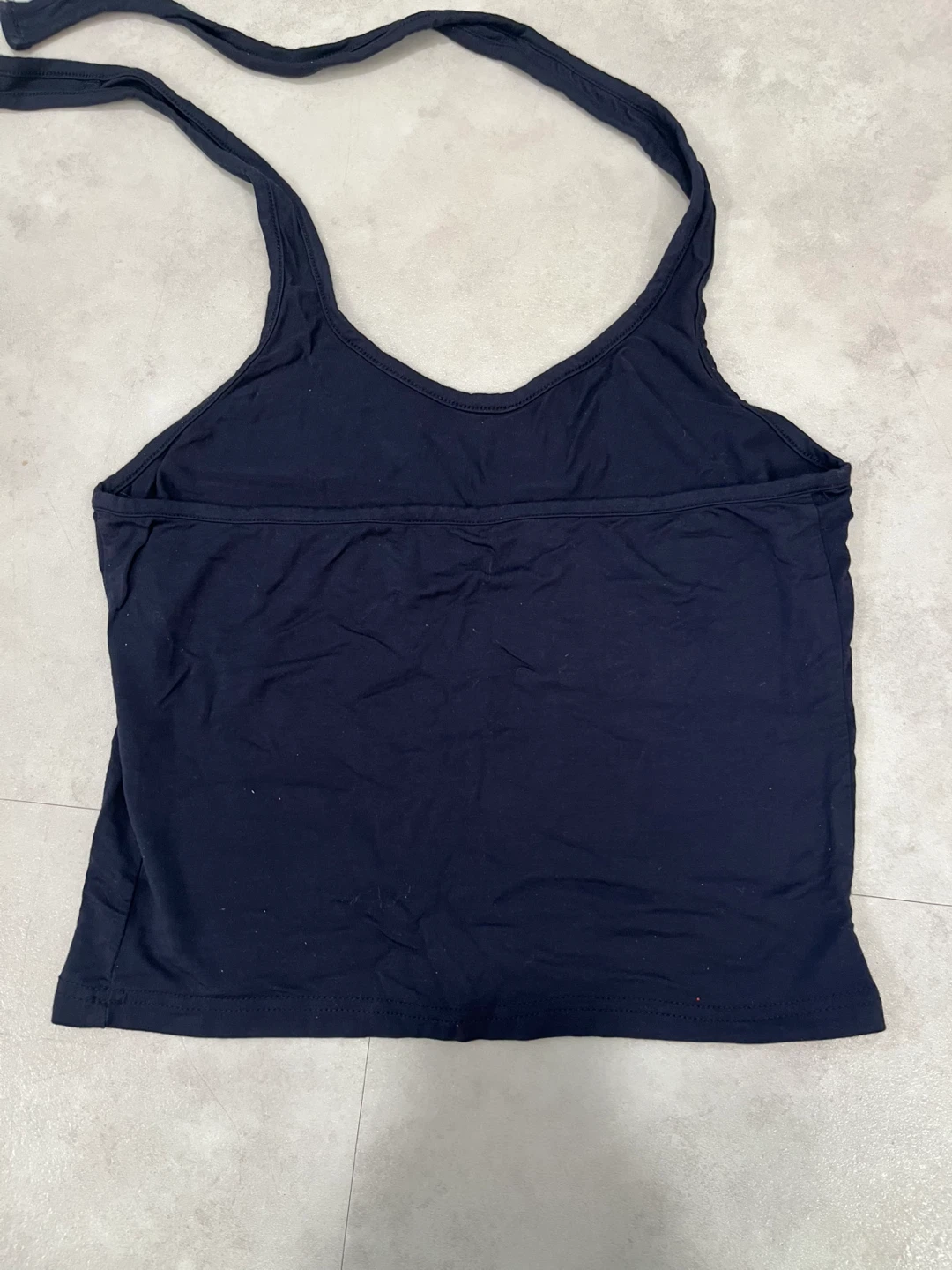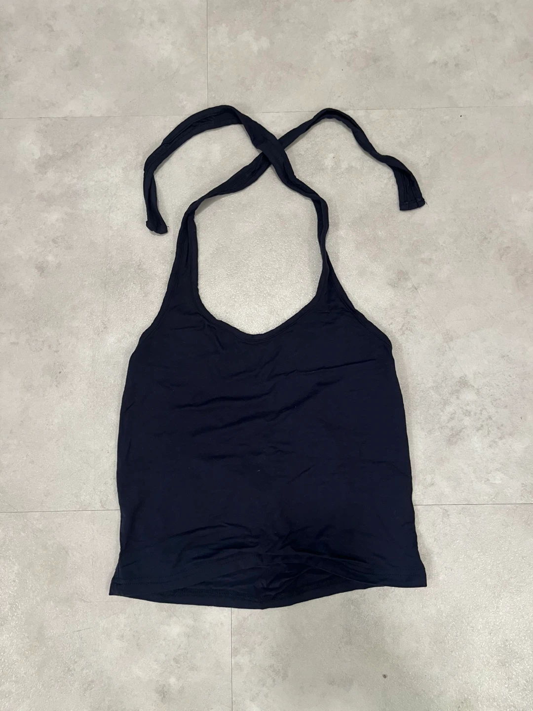 Very cute navy blue halter top! Size Small but very stretchy. I bought this off Depop awhile ago and I really like it but unfortunately it just doesn’t look the best on me. Nothing wrong with the item at all and only worn twice.
