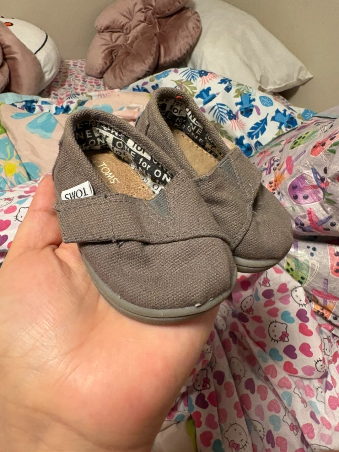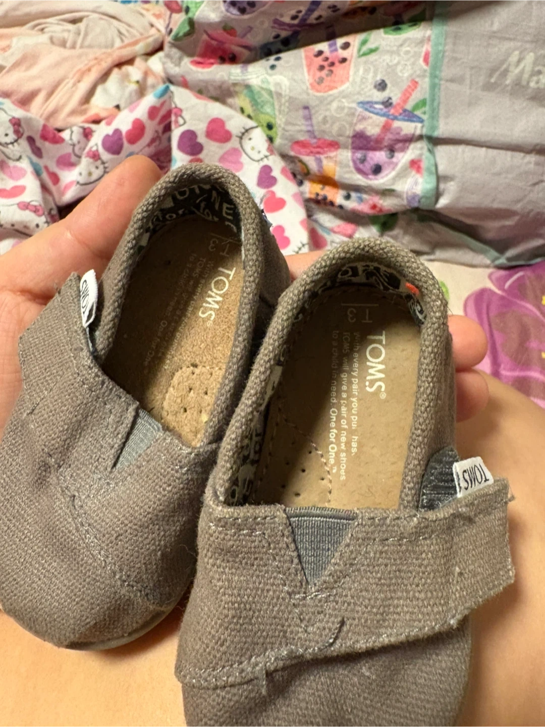 Selling a pair of adorable TOMS baby shoes in size T3! They are in good condition and ready for a new little one to wear. Perfect for keeping those tiny feet comfy and stylish