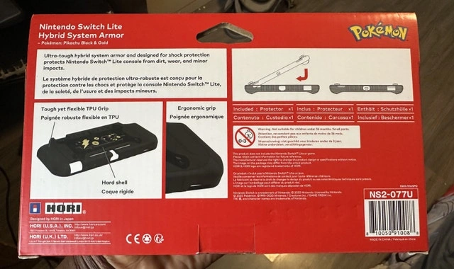 Hori Hybrid System Armor for the Nintendo Switch Lite, featuring a cool Pikachu Black & Gold design! This tough armor is designed for shock protection, keeping your Switch Lite safe from wear, dirt, and minor impacts. It includes a tough yet flexible TPU grip and a hard shell for extra protection. This is used but in great condition. If the ad is still up, then yes, it is still available!