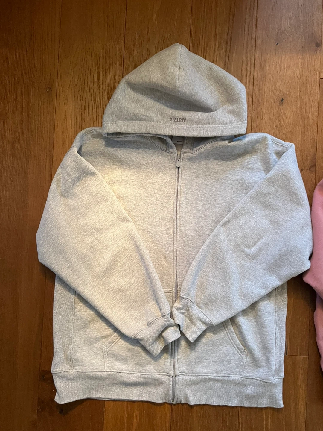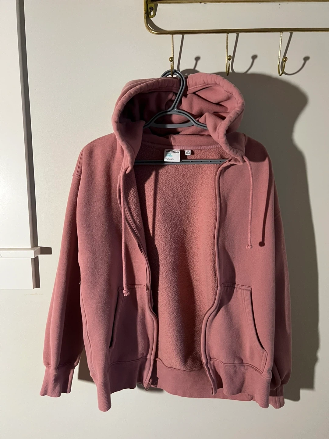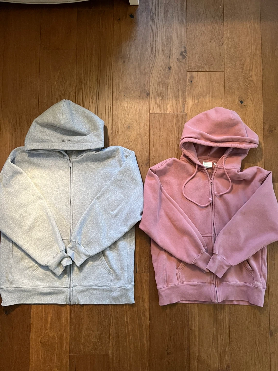 Two cozy zip-up hoodies from Aritzia! One is a light grey and the other is a lovely pink colour. Both are in great condition.