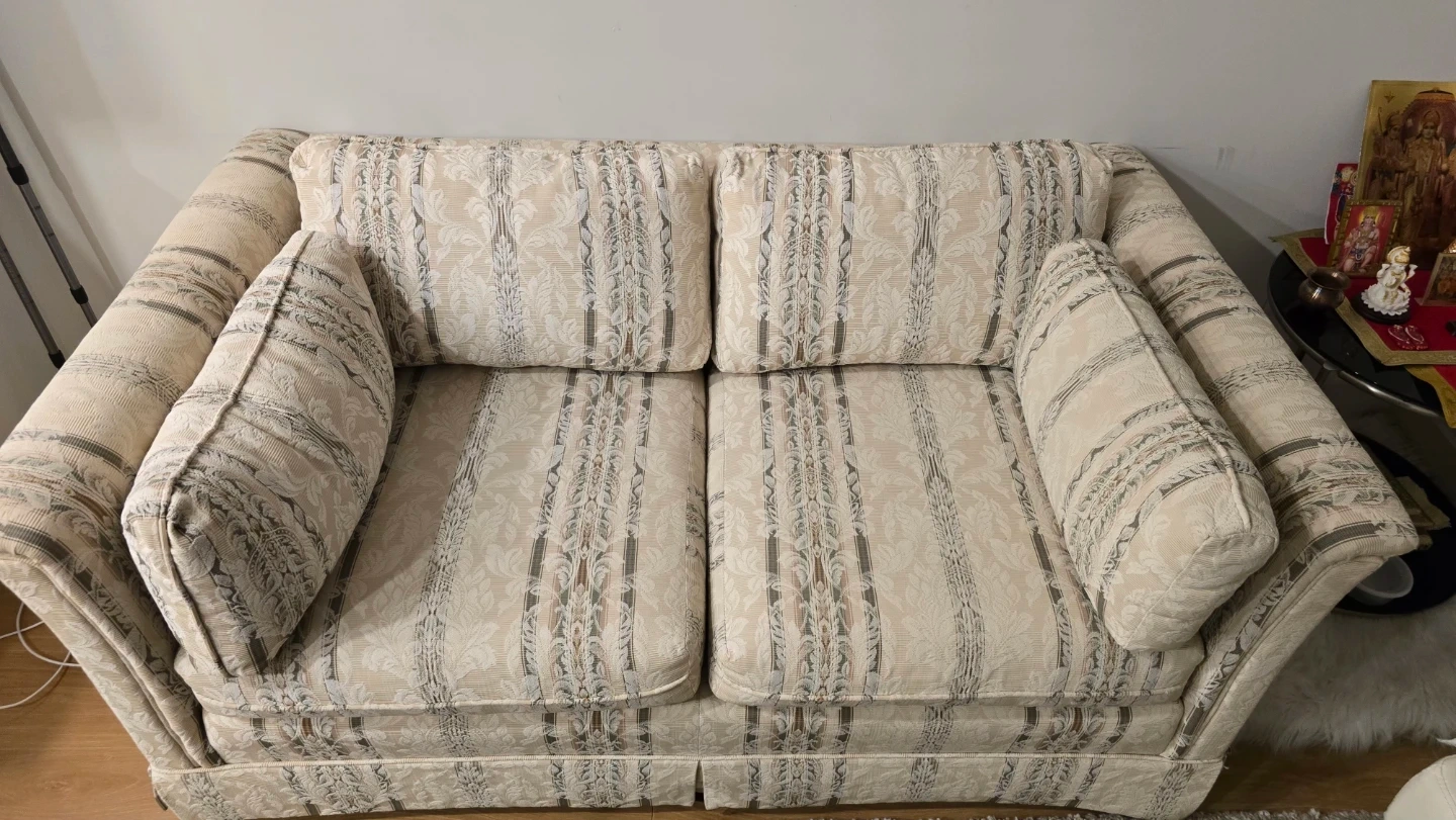 Selling a loveseat sofa with a unique patterned design. It's in new condition and would be a great addition to any living space. The sofa includes the cushions pictured!