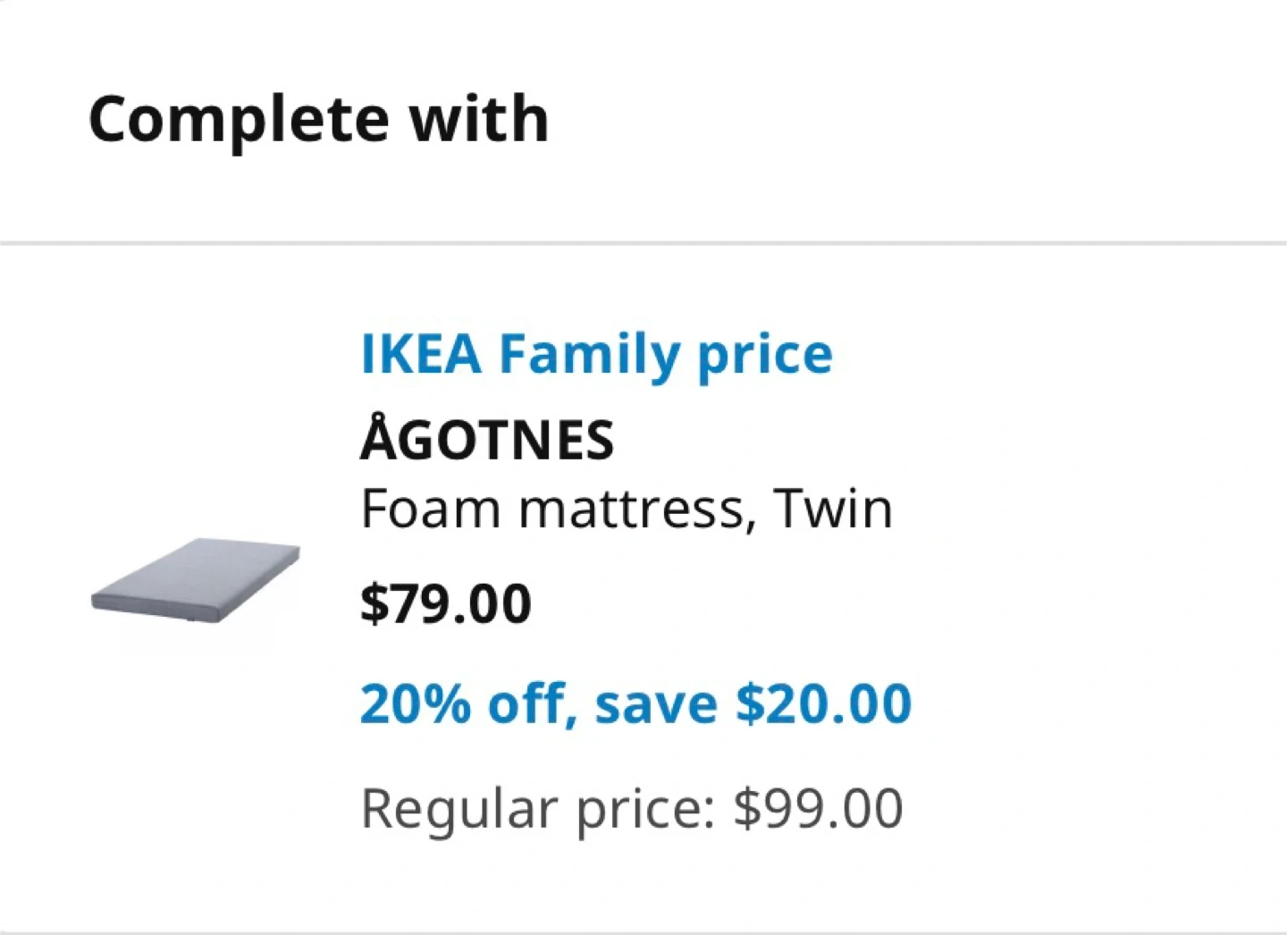 The Agotnes foam mattress and mattress cover are included.