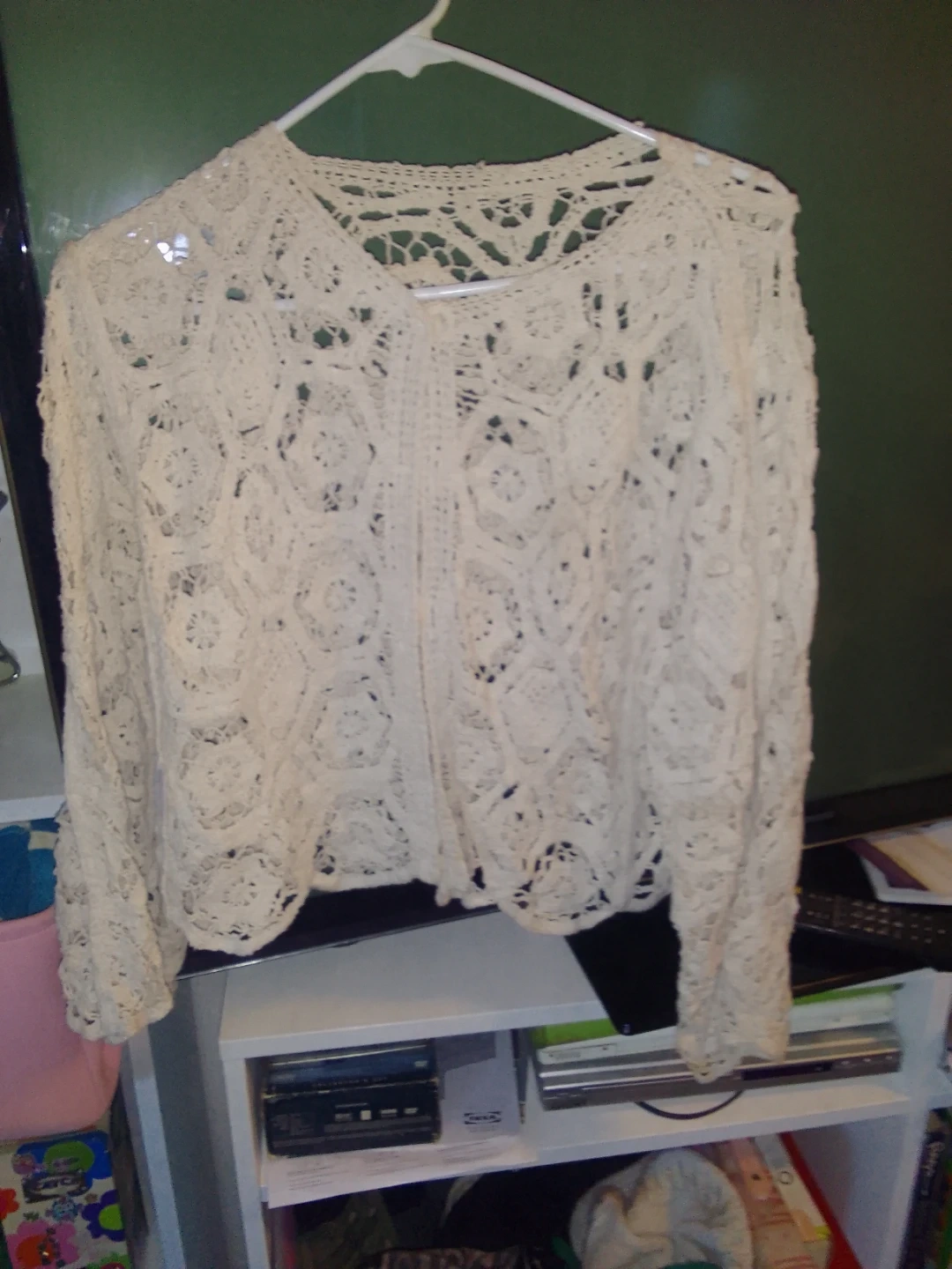 Selling a brand new hand made cream-coloured crochet cardigan. It's in great condition and perfect for layering! The intricate crochet design adds a touch of elegance to any outfit. It's lightweight and comfortable, making it ideal for spring or summer evenings. Goes with anything and everything