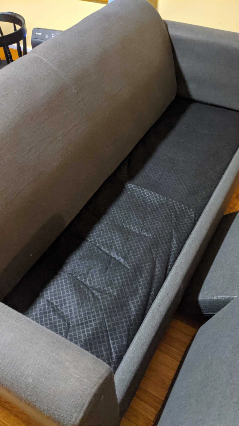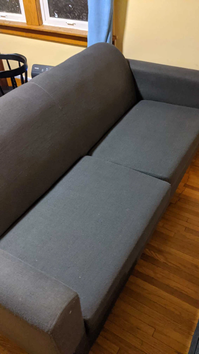 Selling a grey sofa in good condition. It's a great piece for any living room and offers comfortable seating. It also has storage underneath the cushions, which is super handy!